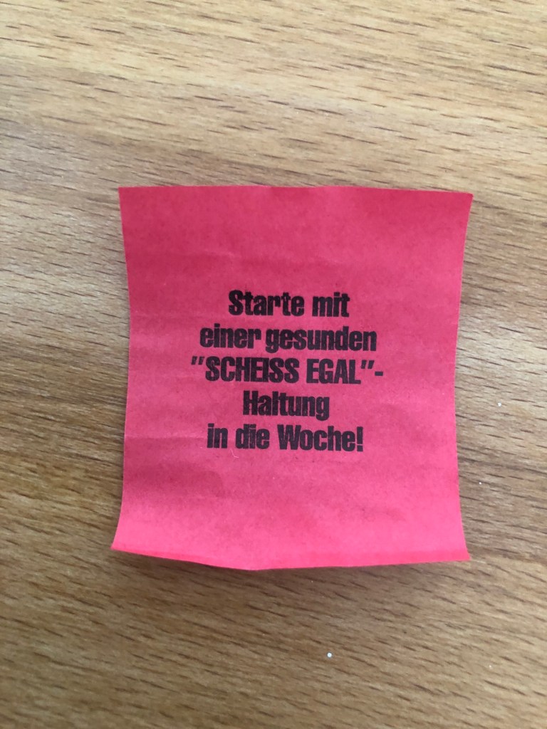 Mein (voraussichtlich) letztes Schuljahr als Lehrer ist nun rum, und es ist ein ganz merkwürdiges Gefühl, denn ich war ja sehr gerne Lehrer. Trotzdem bin ich mir sicher, dass das die richtige Entscheidung war, auch wenn uns das Schicksal bzw. Corona es gerade nicht einfach macht. Von meinen Kollegen habe ich zum Abschied noch sehr nette Geschenke bekommen, eines davon sind 50 Lose mit Aufgaben darauf, die ich dann erfüllen muss – sehr coole Idee! Ich hätte sie gerne als Countdown genommen, aber 50 Tage werden wohl nicht reichen… deshalb habe ich jetzt beschlossen, dass ich alle 3 Tage ein Los öffnen werde, in der Hoffnung, dass 150 Tage reichen… Und heute hab ich damit angefangen – hier mein Los mit meiner ersten Aufgabe: