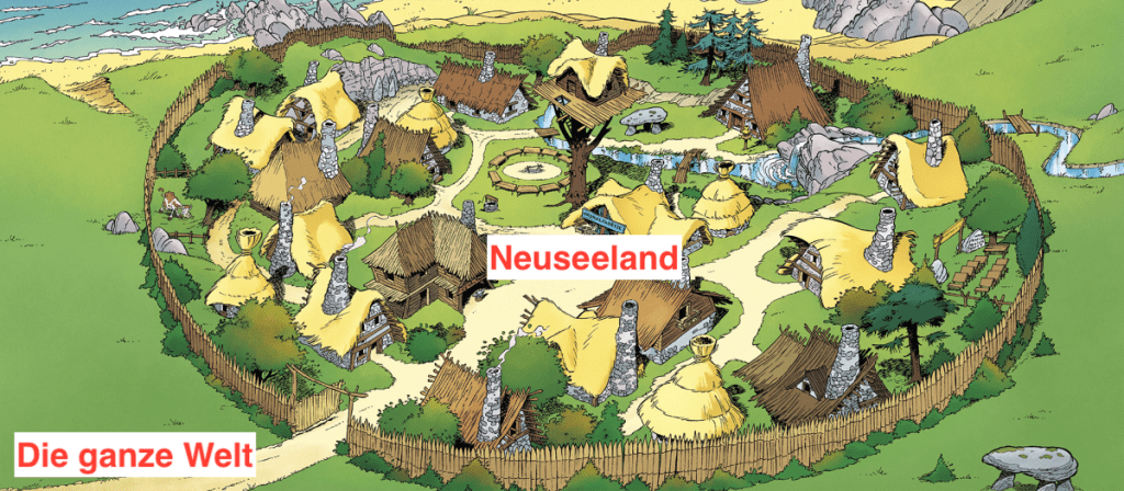 „Wir befinden uns im Jahre 2020 n.Chr. Die ganze Welt wird von einem Virus beherrscht… Die ganze Welt? Nein! Eine von unbeugsamen Neuseeländern bevölkerte Insel (also eigentlich zwei, um genau zu sein) hört nicht auf, dem Eindringling Widerstand zu leisten“ – und hat ihn sogar ausgerottet…