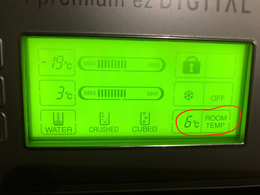 Apropos frostig: In unserem Haus ist es bei kalten Temperaturen nicht viel wärmer als draußen. Hier unser Thermometer am Kühlschrank an einem kalten Morgen (wohlgemerkt die Küche ist der wärmste Raum in unserem Haus, im Schlafzimmer hat es ungefähr die gleiche Temperatur wie draußen!):