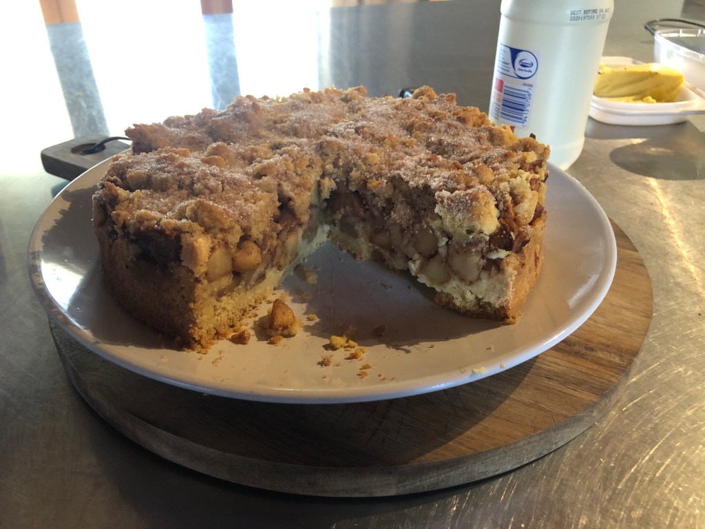 Leider war es nicht nur kalt, sondern auch sehr nass in den letzten Wochen, so dass wir nicht so viel draußen tun konnten, wie wir gerne getan hätten. Dafür blieb mehr Zeit für zum Beispiel Kuchen backen. Ja, ihr lest richtig! Ich backe inzwischen Kuchen! Und sogar richtig leckeren Kuchen! Anfang Juli verließen uns unsere RSE worker und schenkten uns zum Abschied eine große Kiste Äpfel. Und da wir beide nicht so wirkliche Apfelesser sind, sie im Kuchen aber gerne mögen, bot es sich an, diverse Apfelkuchen-Varianten auszuprobieren: