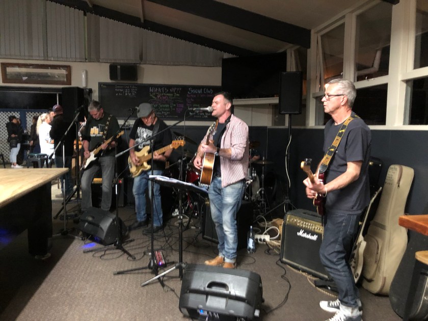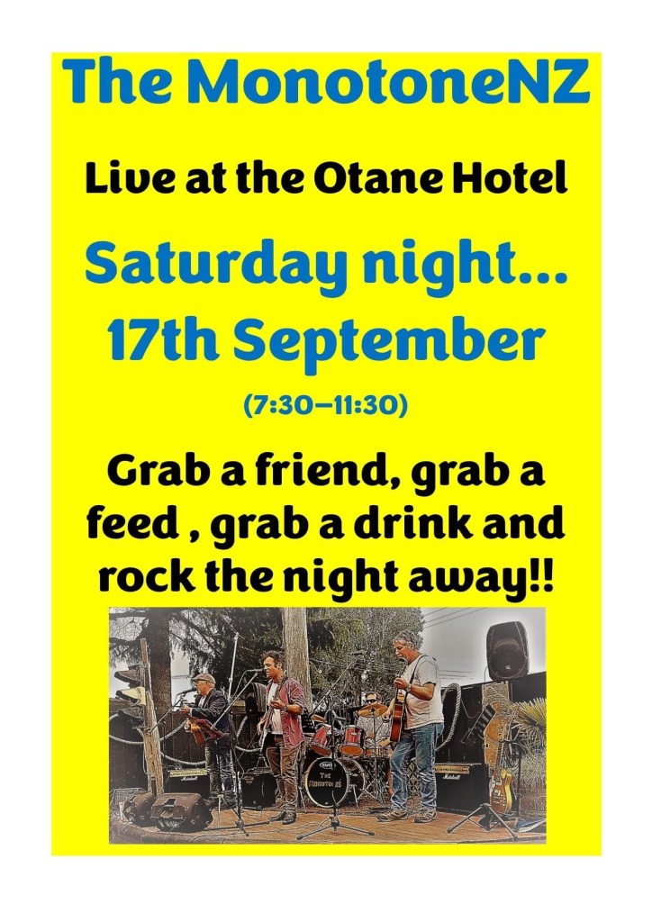 Das nächste musikalische Highlight stand dann schon zwei Wochen später auf dem Programm: Paddy’s Band, „The MonotoneNZ“, hatte einen Auftritt im Otane Pub! Auch der war ein voller Erfolg, obgleich man ihn nicht mit ihrem letzten Konzert im Copperpot vergleichen kann, wo die Leute extra kamen, um die Band spielen zu hören. In Otane war es eine gewöhnliche Pub-Nacht mit überwiegend locals, die jeden Samstag Abend in den Pub gehen, um Freunde auf ein Bierchen zu treffen oder Rugby zu schauen. Auch an diesem Abend lief neben der Live Musik der Fernseher mit Rugby (ohne Ton). Trotzdem war die Stimmung gut, und einige Leute tanzten sogar: