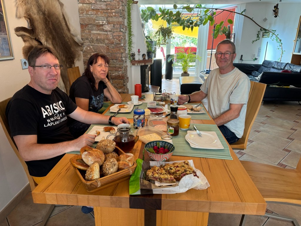 Dort hatten wir dann um die Mittagszeit herum unser zweites Frühstück / Mittagessen zusammen mit Claudi und Thorsten. Praktischerweise arbeitete Thorsten diese Woche komplett von Zuhause aus.