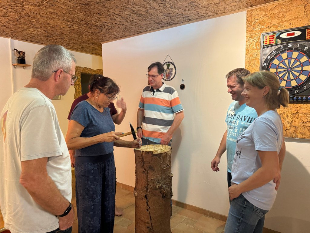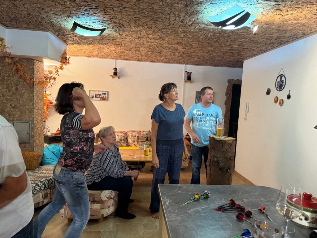 Danach ging es in den Partykeller, wo wir ausgiebig Kicker, Darts und Nageln spielten. Irgendwann nach Mitternacht gaben Paddy und ich auf, unsere Müdigkeit zu bekämpfen und verabschiedeten uns ins Bett. Was für ein toller Abend!!!