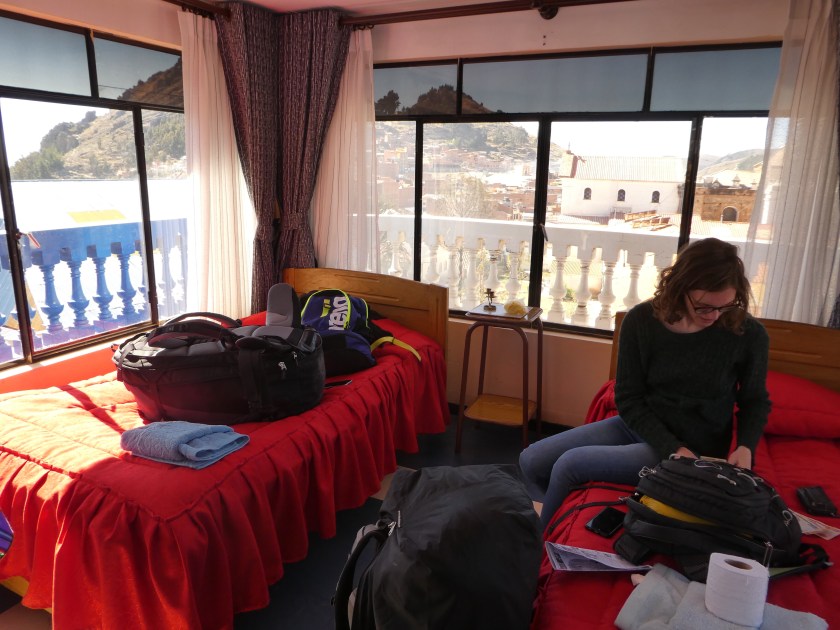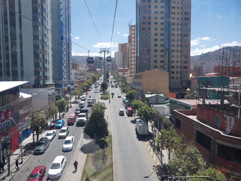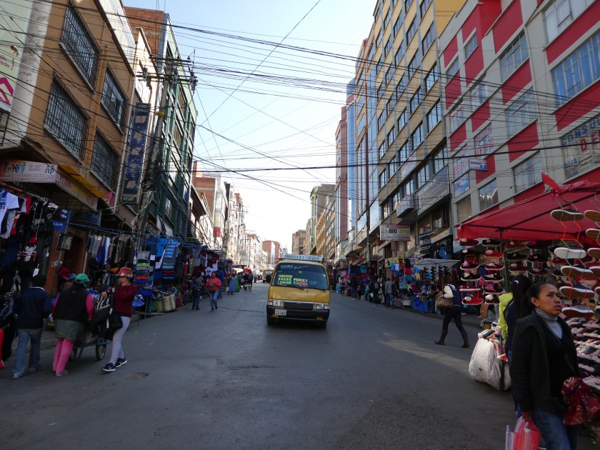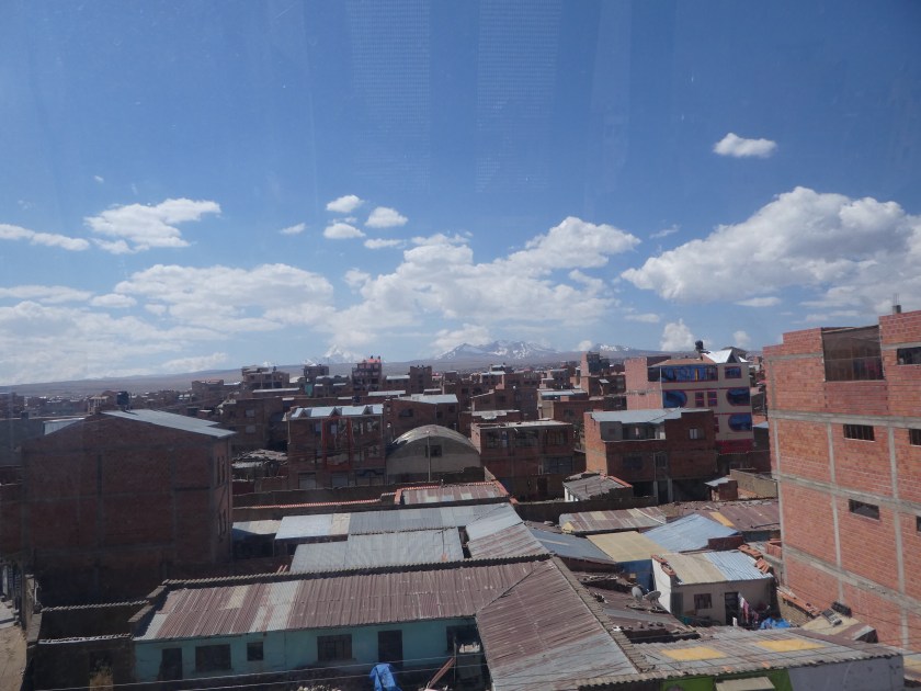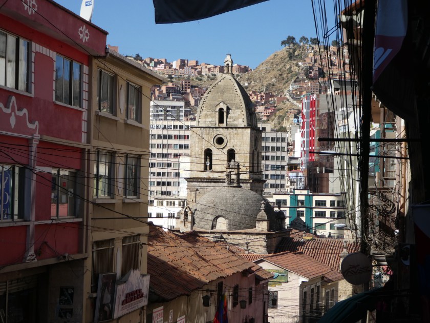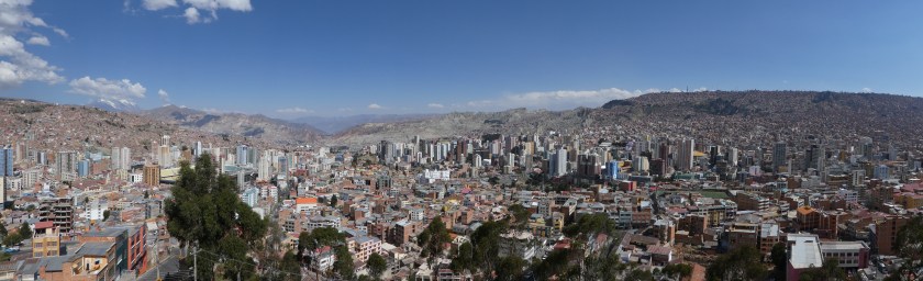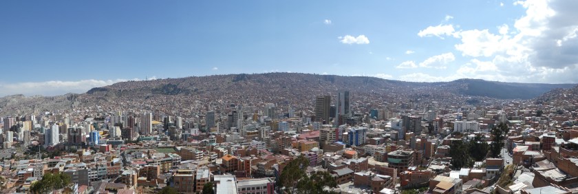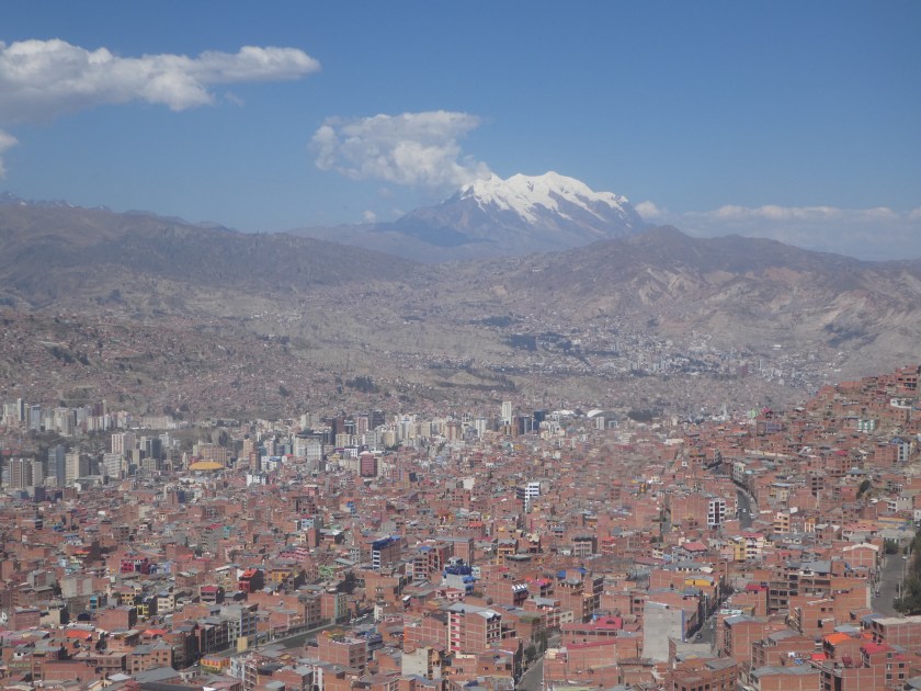 Im Hintergrund sieht man, wie sich die Häuser bis auf die Berge hinaufziehen. La Paz ist echt riesig!