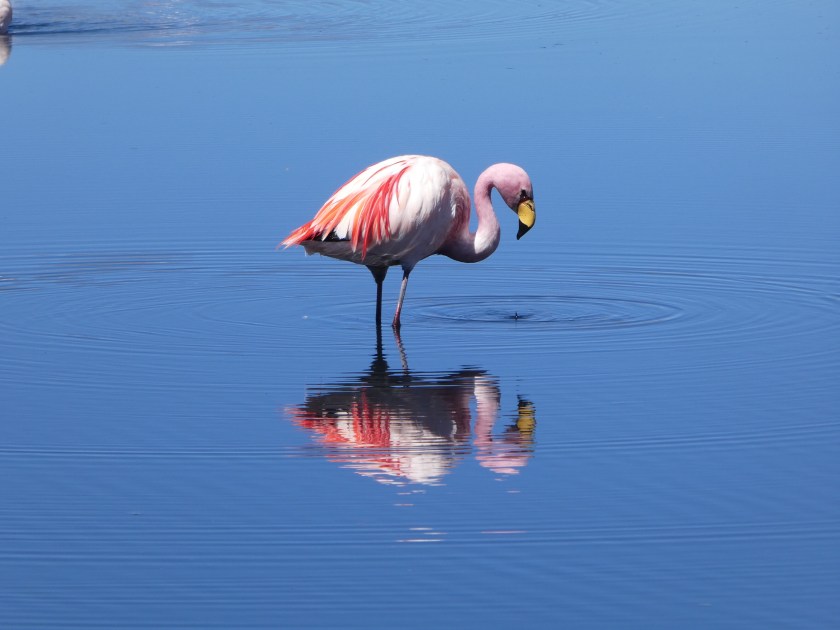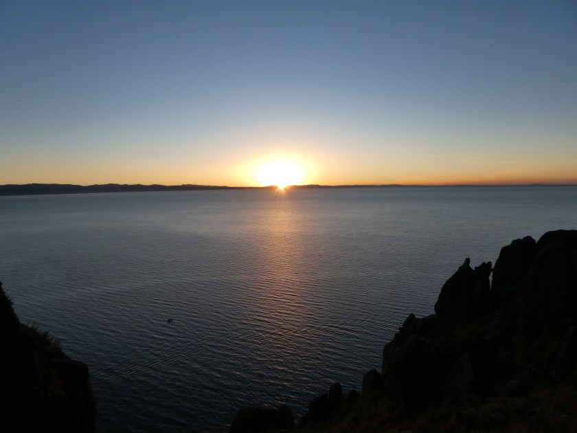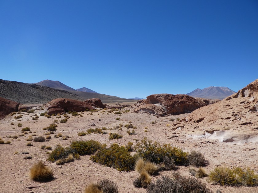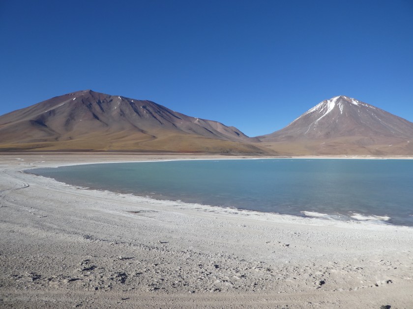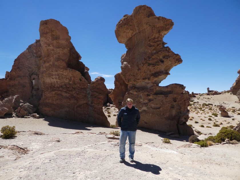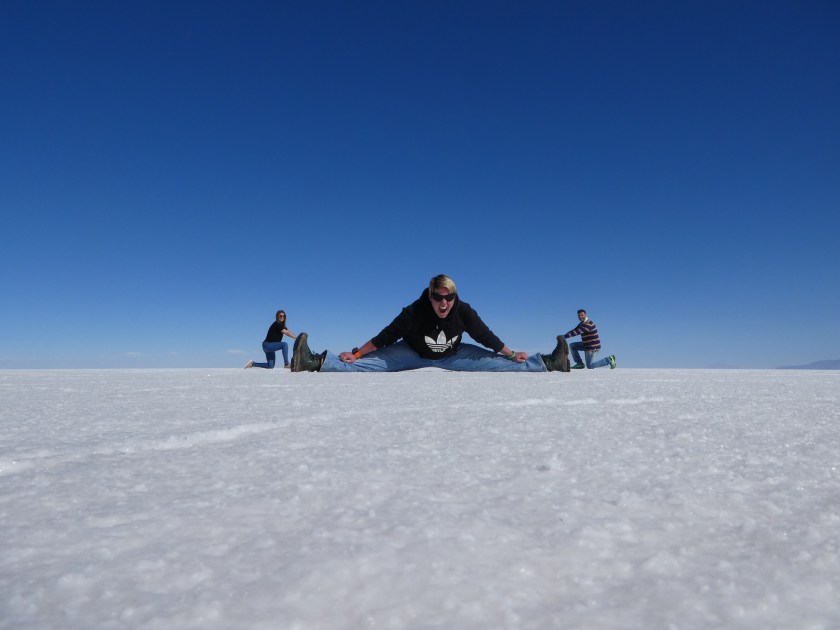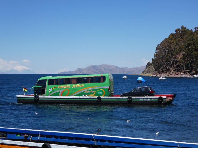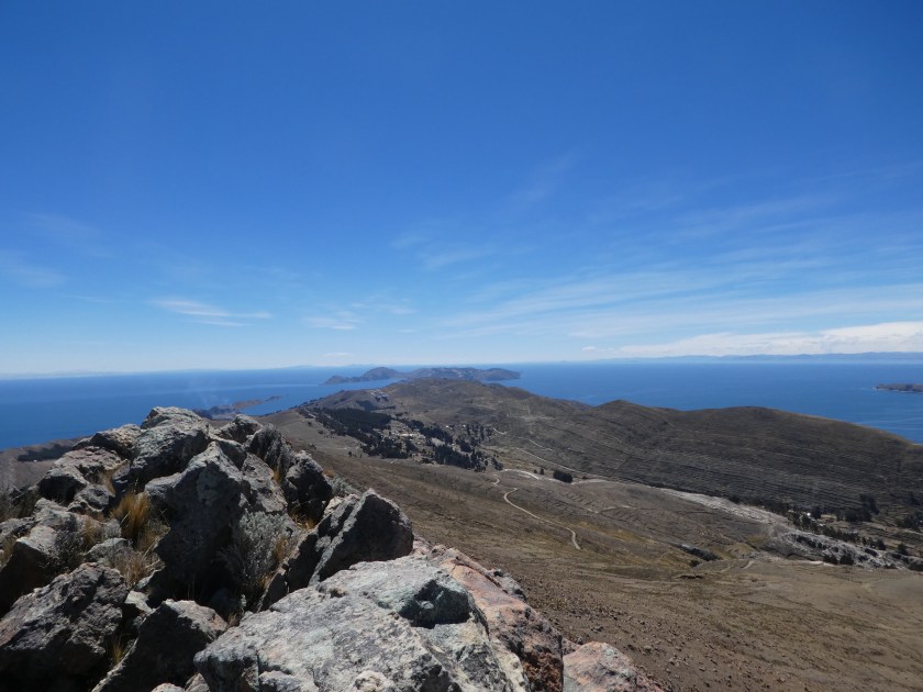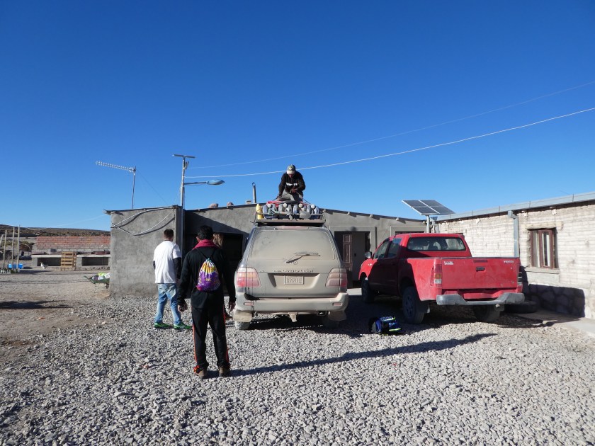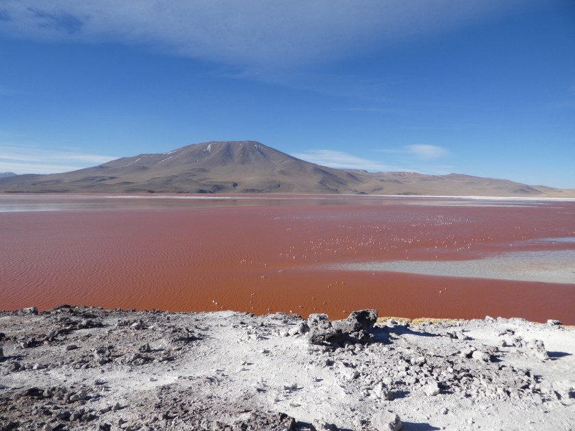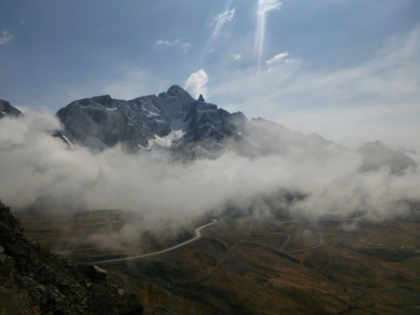 Die linke Fahne in den Regenbogenfarben steht übrigens für alle indigenen Völker, von denen es in Bolivien 36 gibt. Die mittlere Flagge ist die Nationalflagge, die rechte Flagge ist laut Marie „die Flagge der Hoffnung“, es ist die „Naval flag“ (irgendwann, bevor Bolivien einen Krieg mit Chile verlor, hatte Bolivien ein Stück Küste), die zeigt, dass Bolivien immer noch darauf hofft, irgendwann wieder Zugang zum Meer zu bekommen.