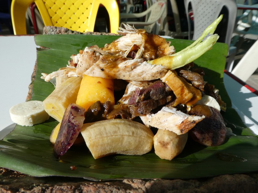 Nach umfassender Recherche, sprich zwei Runden um den Foodcourt, entschied ich mich für ein Gericht, das typisch für die Yungas ist (Namen hab ich vergessen) mit Kartoffeln, grünen Bananen, Kochbananen, einem Gemüse, das ich nicht kannte, und Lama- und Hühnchenfleisch, war sehr lecker!!