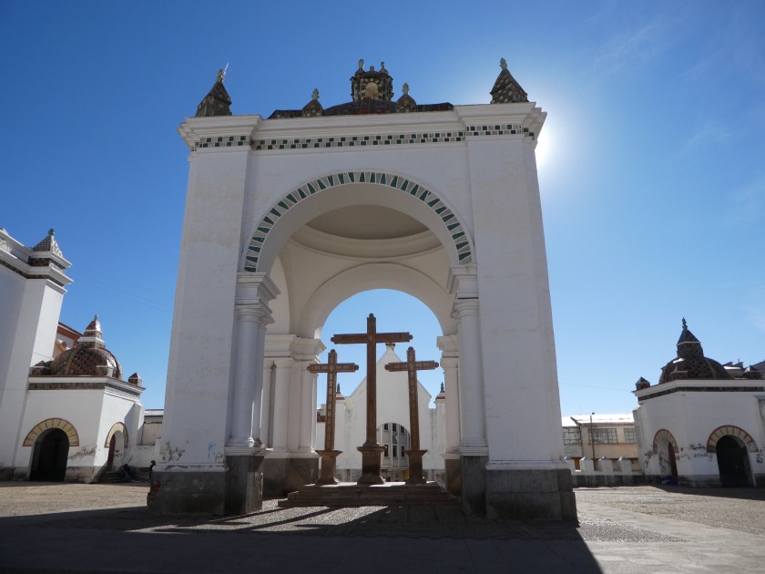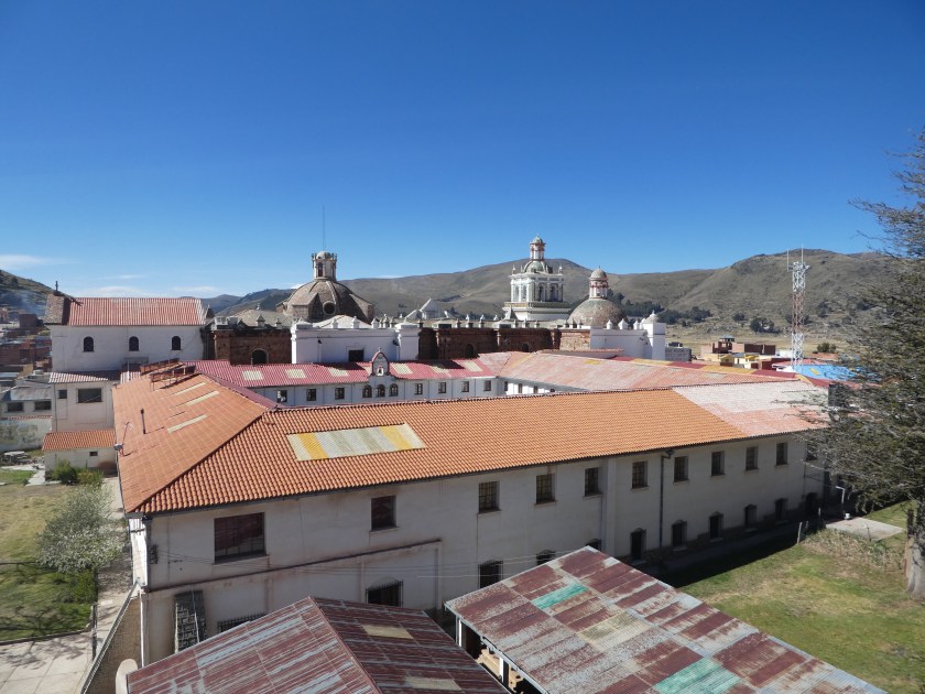 Bin heute morgen mit Kopfweh aufgewacht bzw. hatte schon die ganze Nacht Kopfschmerzen – keine Ahnung, ob das die Höhe ist oder die Erkältung, die ich gerade mal wieder hab dank der krassen Wetter- und Temperaturwechsel. Aber nach dem leckeren Frühstück und zusätzlich Wasser war dann alles wieder okay und ich beschloss, heute die Red-Cap Guided Walking Tour mitzumachen. Treffpunkt war am Plaza Sucre, oder auch Plaza San Pedro genannt, nach dieser Kirche hier: