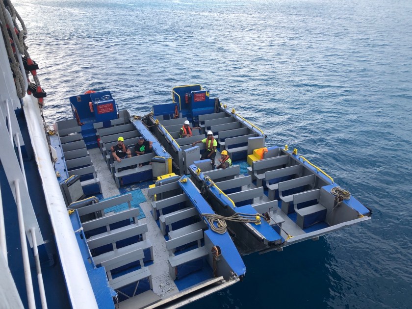 Per Barge wurden alle sicher von der Aranui zum Strand gebracht.