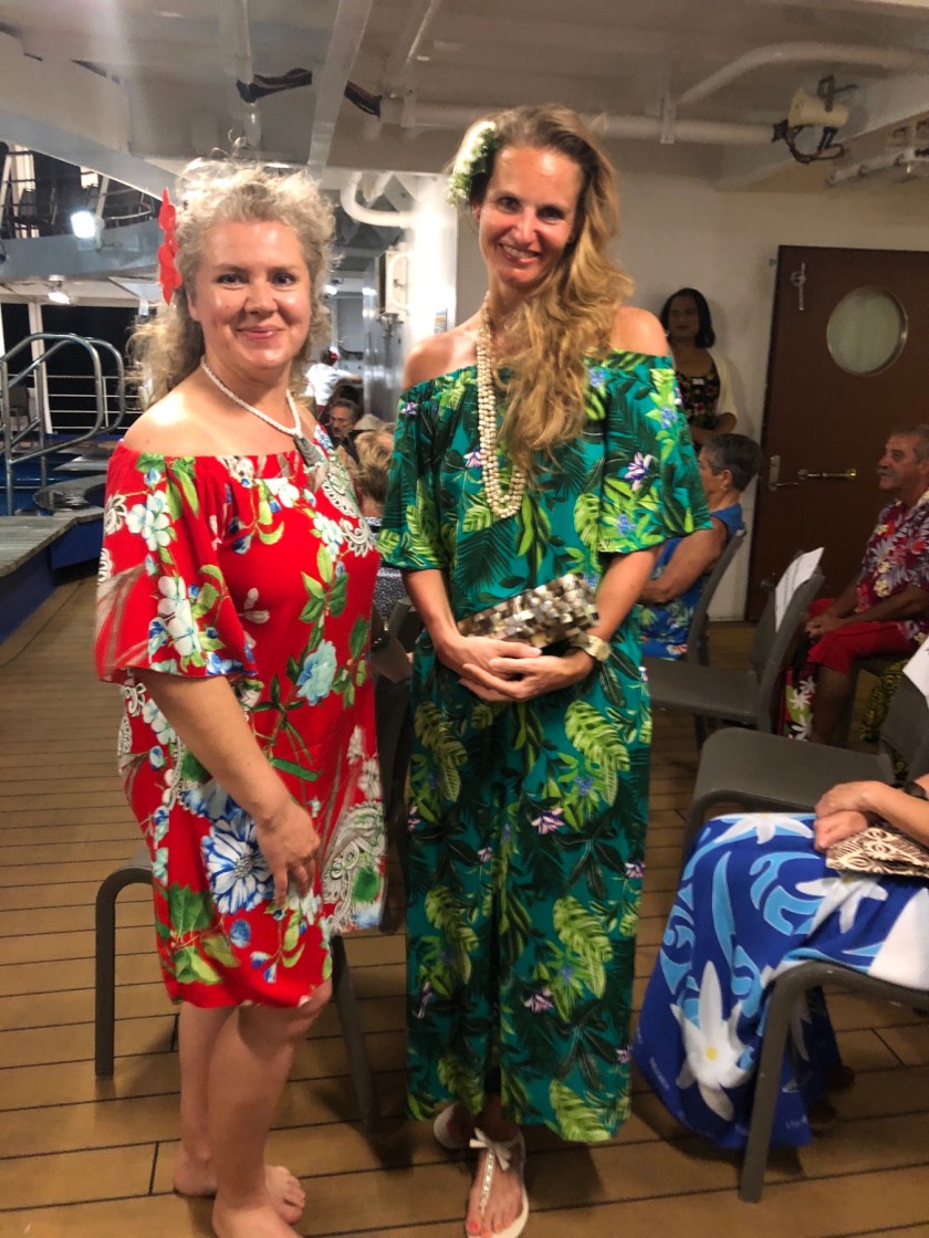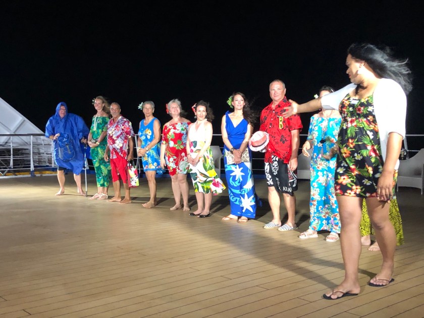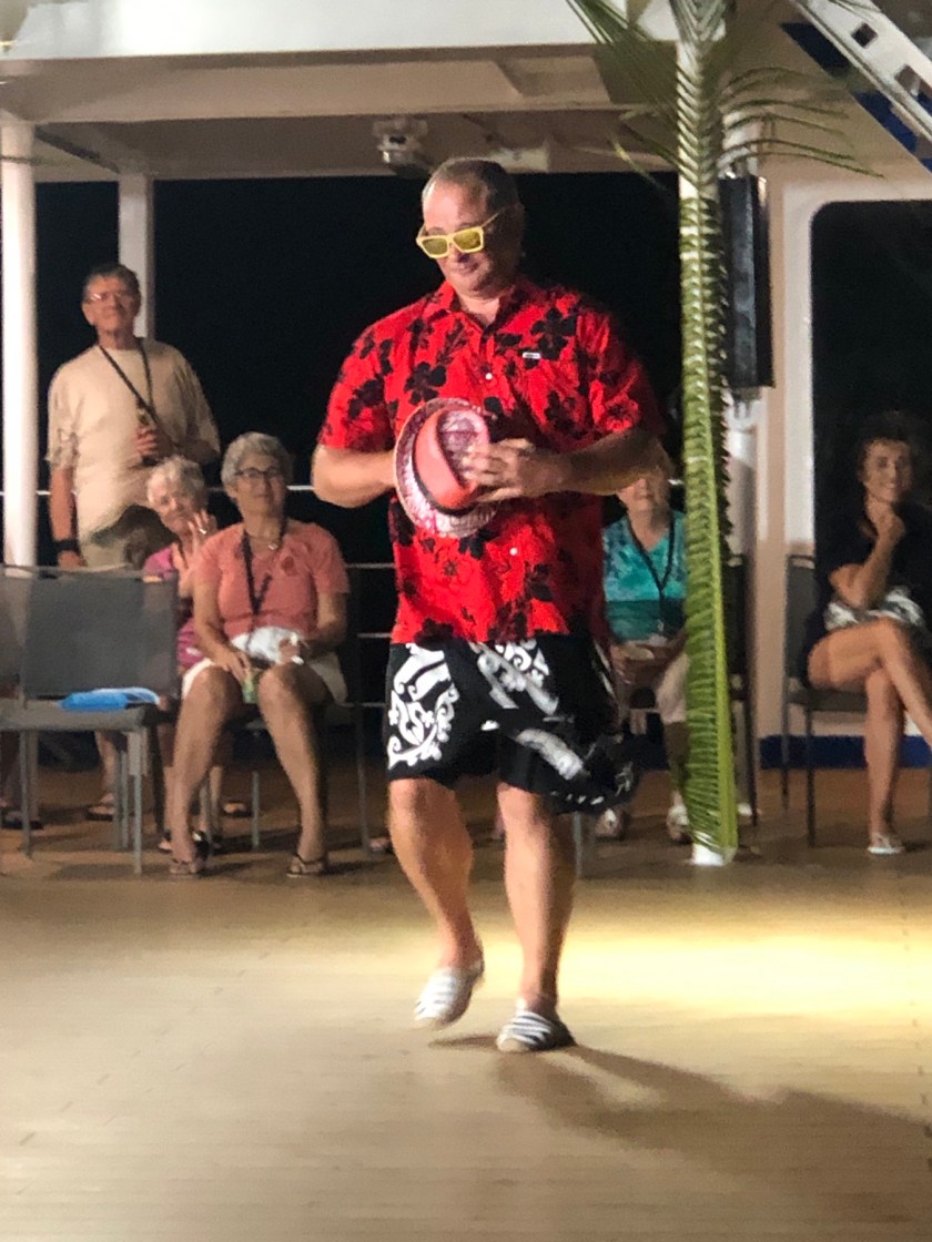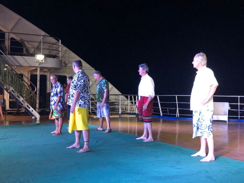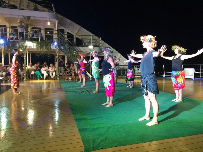 Und da so eine Vorführung viel besser wirkt, wenn mehr Tänzer mitmachen, wurden wiedermal ein paar Passagiere bemüht 😊.