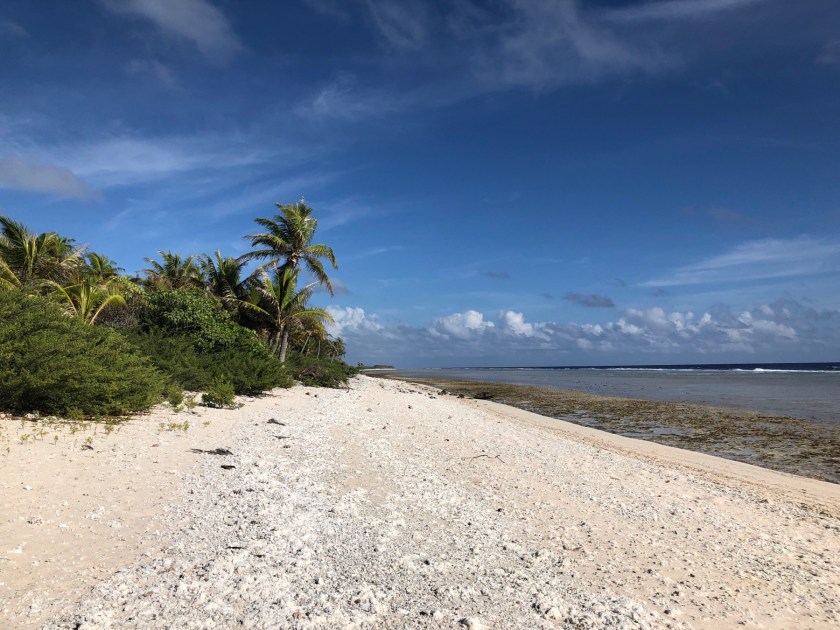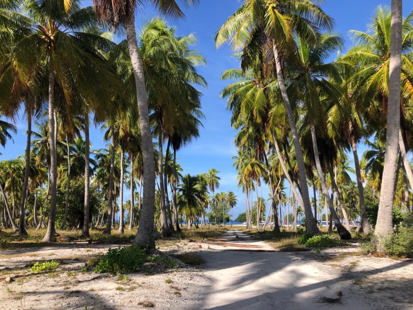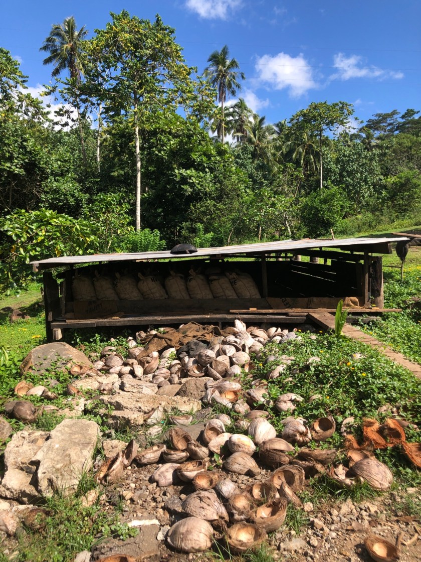 Eine Einkommensquelle hier ist Copra, Cocosnussfleisch. Hier eine Sammelstelle für die vollen Säcke, die dann per Schiff, also unserem, nach Tahiti gebracht werden.