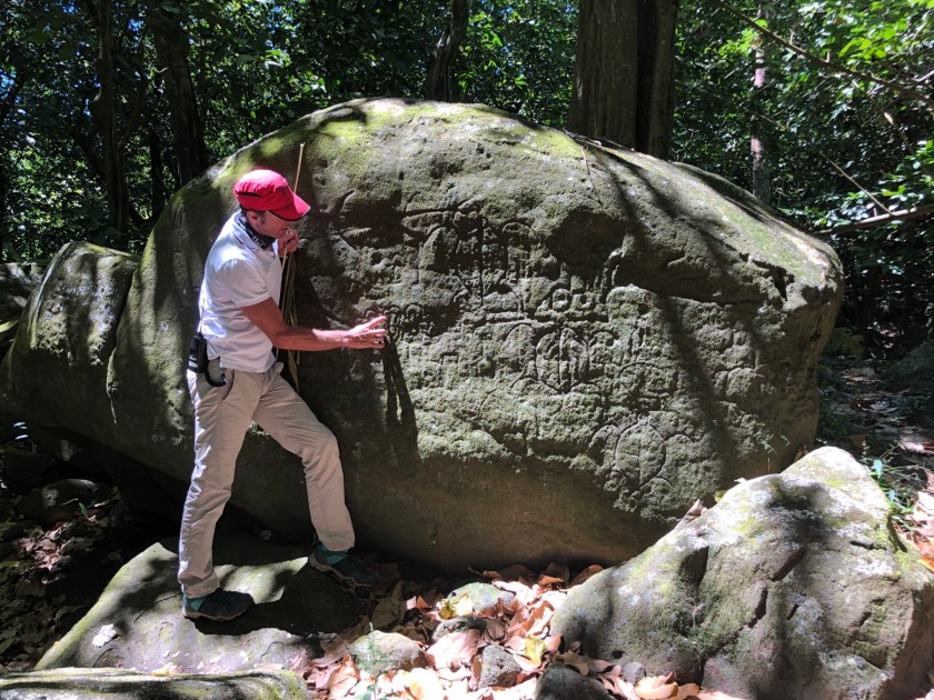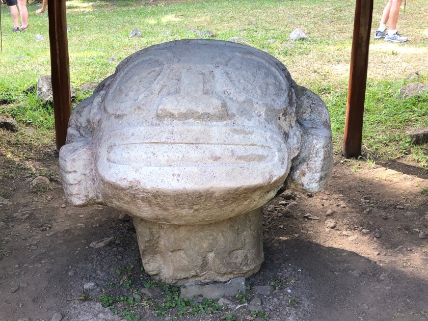 Einziger bekannter liegender Tiki, der seitlich ein Lama eingeschnitzt hat.