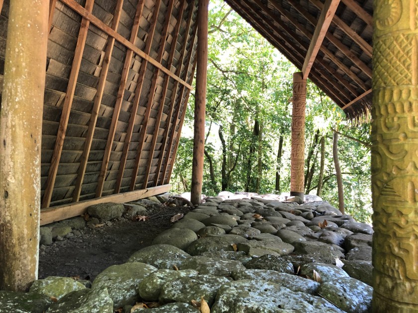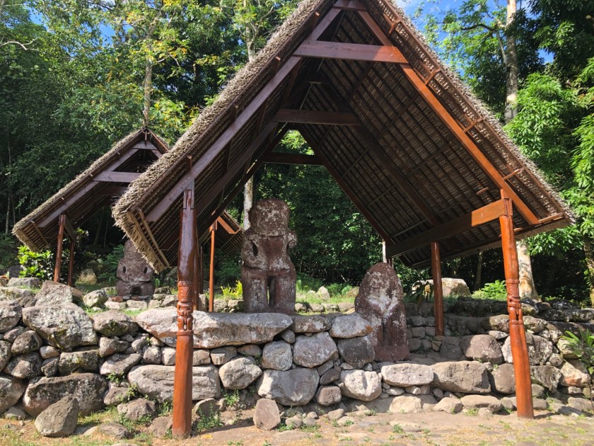 Tikis unter einem Wetterschutz, der natürlich nicht historisch ist 😜.