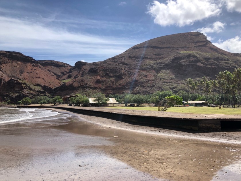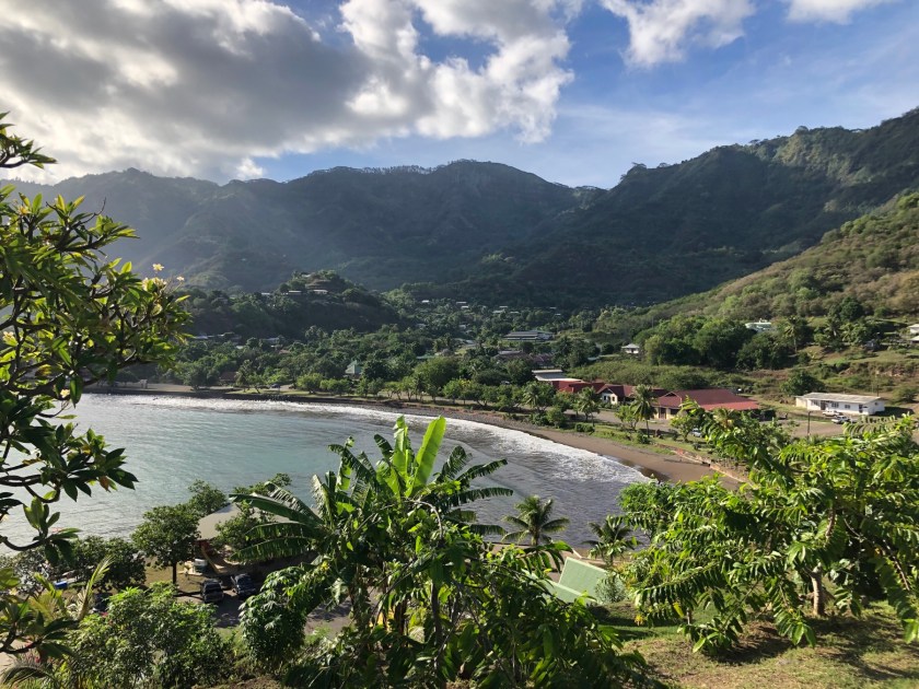 Blick von der Aranui auf die Bucht und das Dorf Vaipaee.