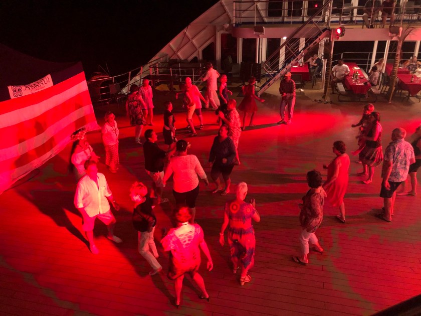 Danach schwangen wir Touristen dann das Disco-Tanzbein, zusammen mit vielen Leuten aus der Aranui-Crew.