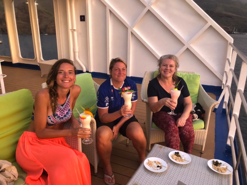 Clem, ich und Anna beim Sunset-Pina Colada 😊.