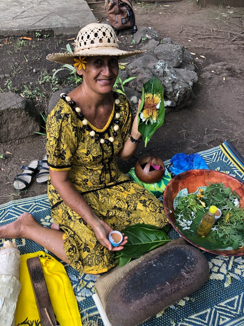 Außerdem weihte sie uns in die Geheimnisse der Umu Hei-Herstellung ein, ein wohlriechendes Gebinde, das Frauen sich ins Haar stecken.