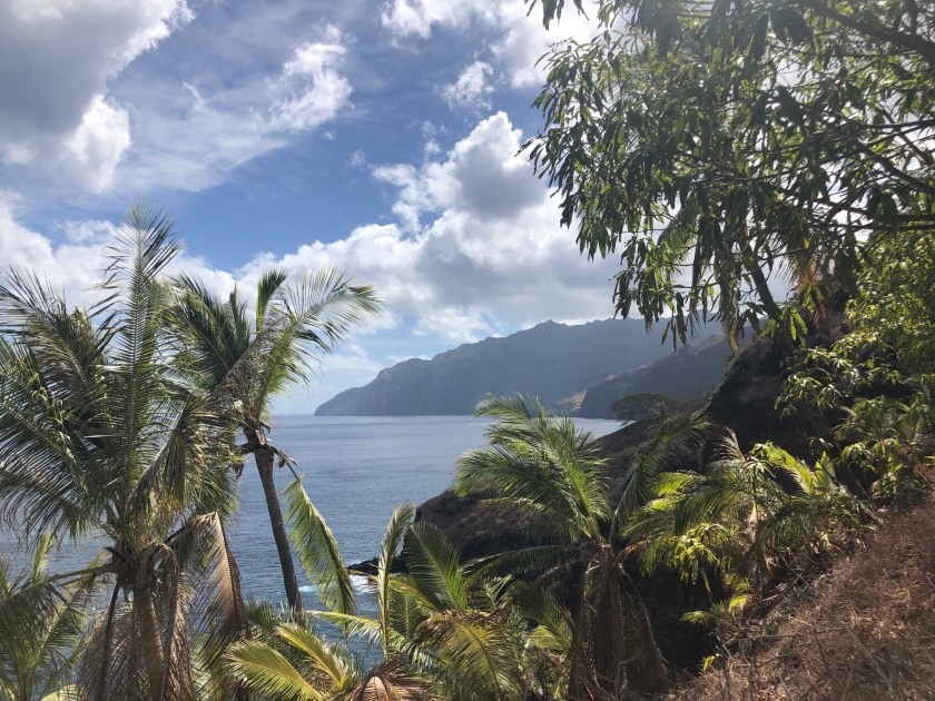 Erster Blick auf Nuku Hiva vom Schiff aus.