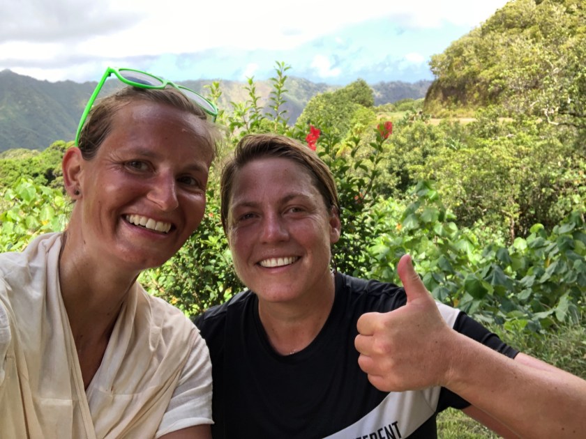 Zwei verschwitzte Deutsche am höchsten Punkt der Wanderung, wo wir mit leckeren Sandwiches und Getränken versorgt wurden.