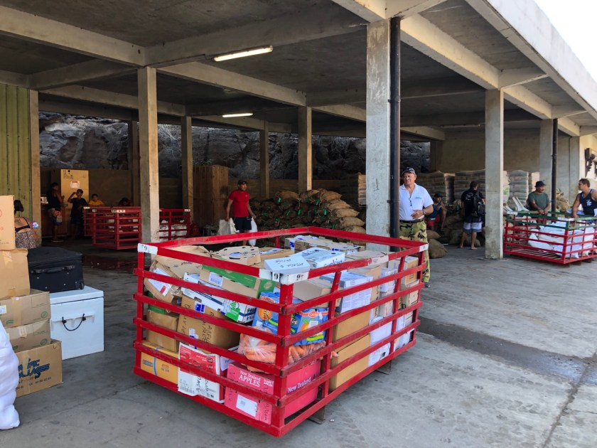 Beladen des Schiffes mit Containern aus Nuku Hiva – schließlich ist die Aranui nicht nur ein Kreuzfahrtschiff.