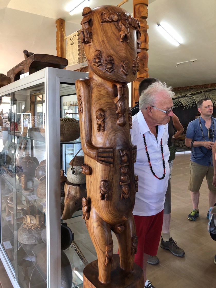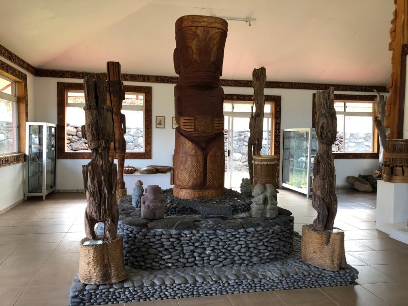 Ausstellungsstücke im Museum: Tikis von Haussäulen.