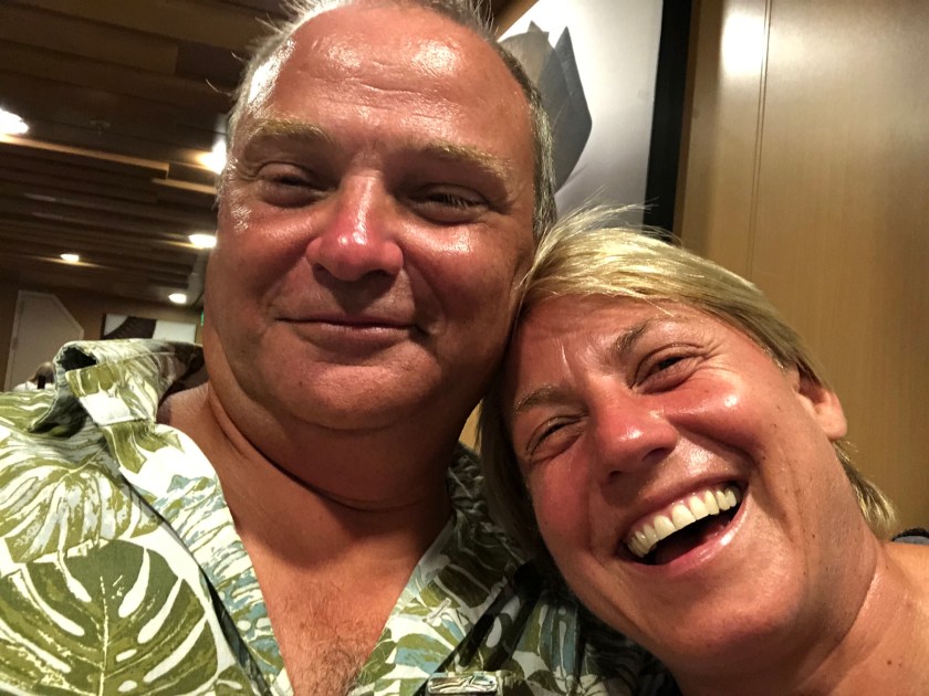 Ich mit Norbert, einem unserer Kellner – immer mit Blumenkranz und / oder Blume im Haar.
