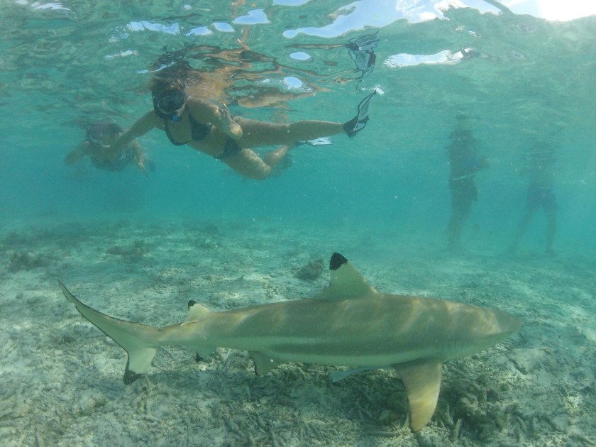 Und da schnorchelt sie auch schon – zusammen mit einem Hai!