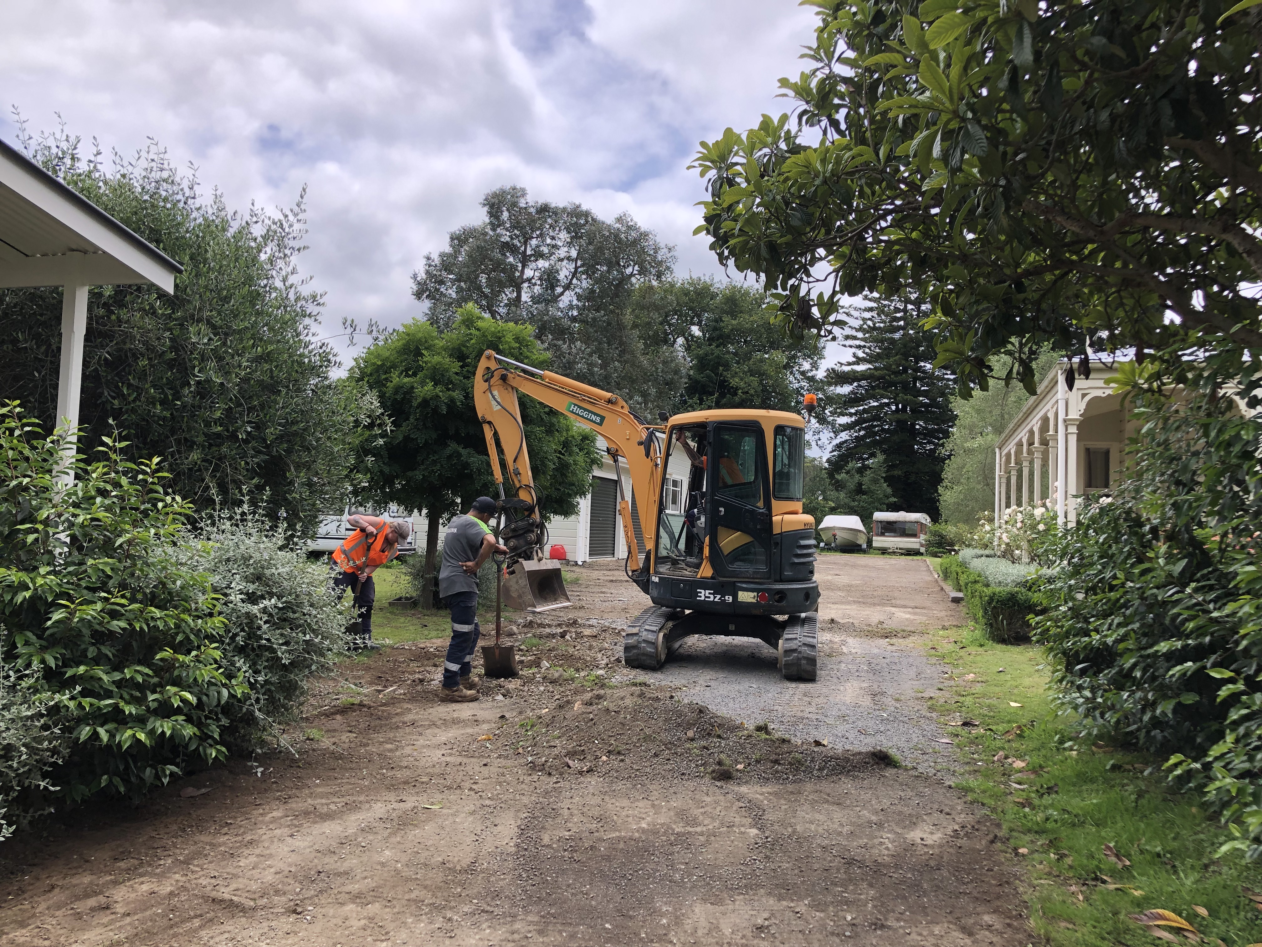 Unser Campingplatz sieht inzwischen wieder richtig schön aus, von den Folgen der Überschwemmung ist (fast) nichts mehr zu sehen. Dank Tracy, unserer Gärtnerin, ist der Holiday Park so ordentlich und schön wie nie zuvor, ich mähe fleißig Rasen und jetzt haben wir auch einen neuen driveway durch den Park und eine asphaltierte Einfahrt in unser Grundstück! So sah unsere Auffahrt vorher aus: