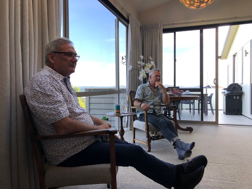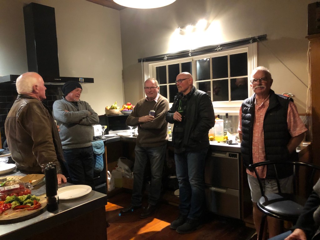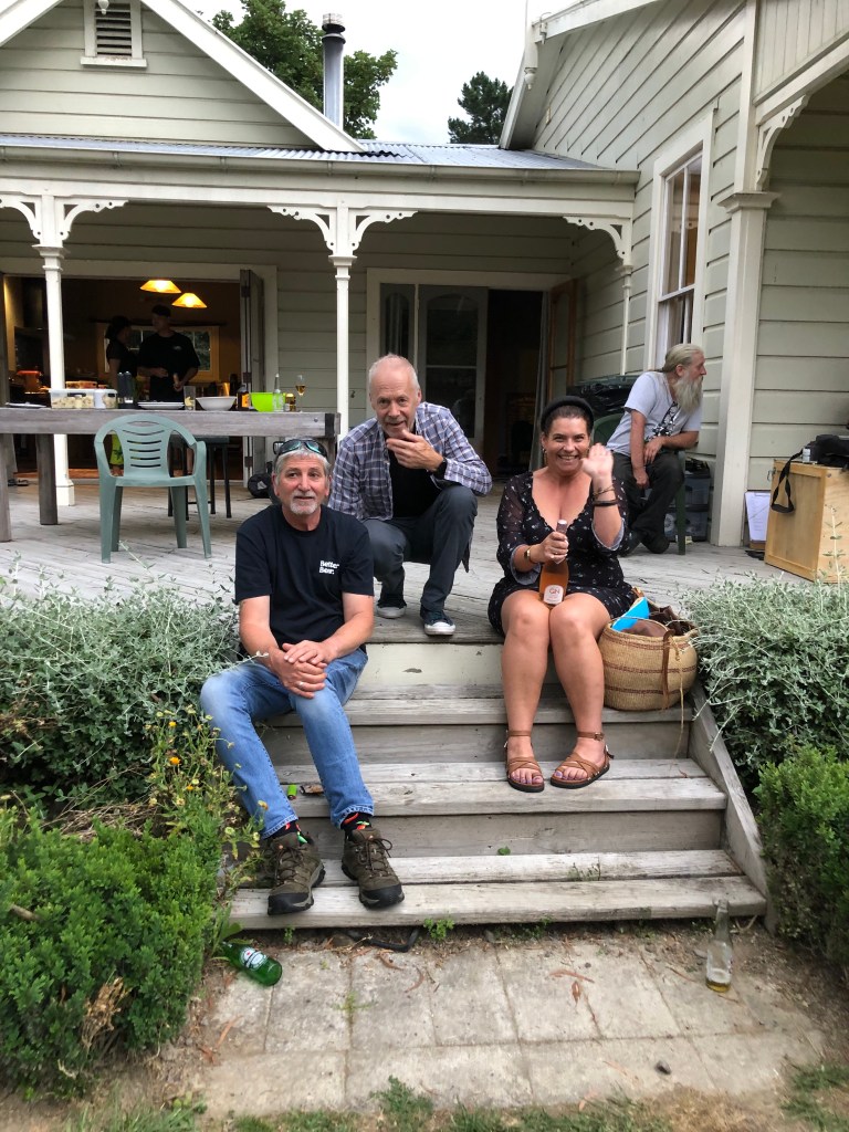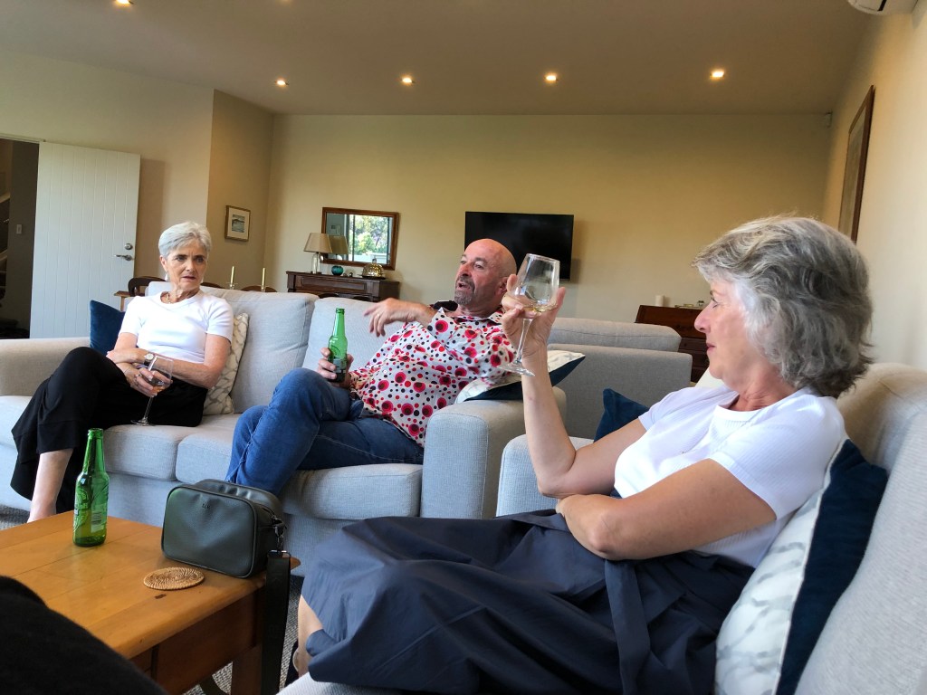 Am Samstag waren wir zu Brent’s 70. Geburtstag in Napier eingeladen. Praktischerweise haben Freunde von Paddy, Baz und Jane, ein großes Haus, dessen Erdgeschoss sie zu einem AirB&B ausgebaut haben, so dass wir uns dort für eine Nacht einquartierten. Auch Bryn und Heather, ein anderes befreundetes Pärchen, übernachtete dort. Bevor wir zur Party aufbrachen, saßen wir dort schon ein wenig bei einem Glas Wein zusammen und die langjährigen Freunde schwelgten in Erinnerungen an gemeinsame Zeiten in London.