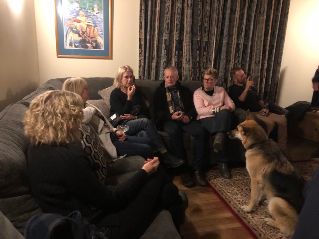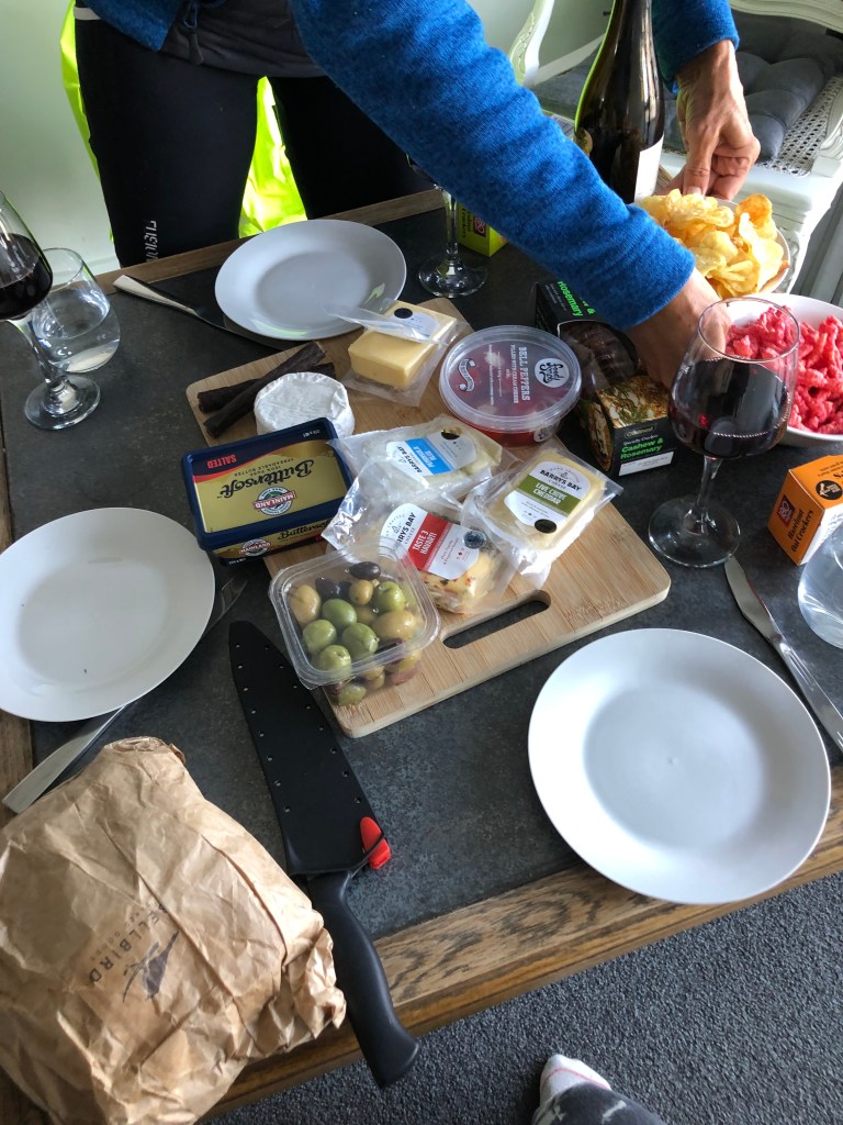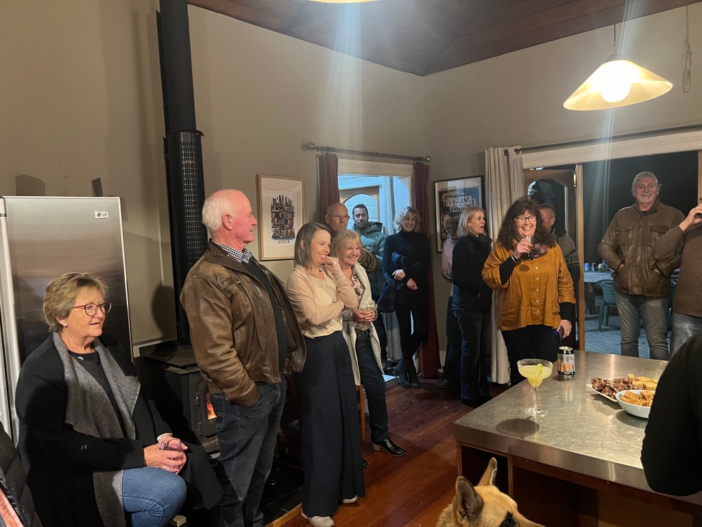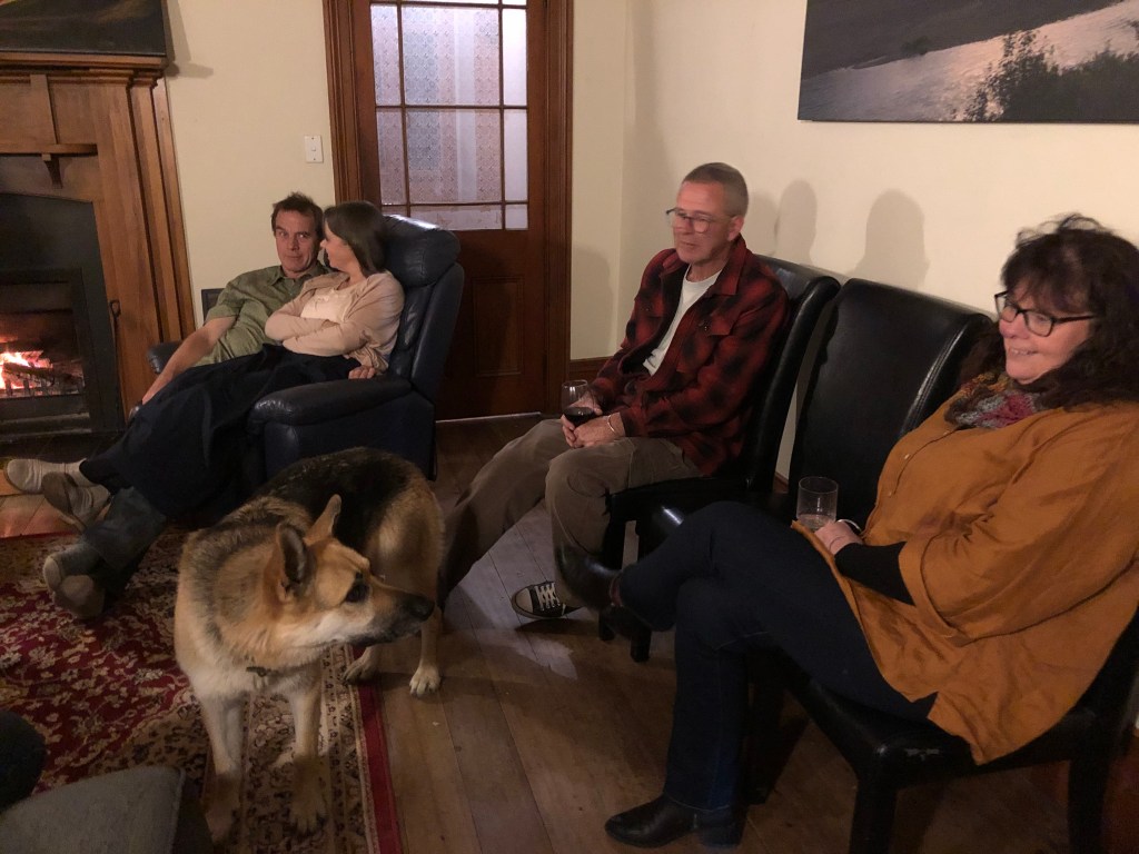 Am Samstag waren wir zu Brent’s 70. Geburtstag in Napier eingeladen. Praktischerweise haben Freunde von Paddy, Baz und Jane, ein großes Haus, dessen Erdgeschoss sie zu einem AirB&B ausgebaut haben, so dass wir uns dort für eine Nacht einquartierten. Auch Bryn und Heather, ein anderes befreundetes Pärchen, übernachtete dort. Bevor wir zur Party aufbrachen, saßen wir dort schon ein wenig bei einem Glas Wein zusammen und die langjährigen Freunde schwelgten in Erinnerungen an gemeinsame Zeiten in London.