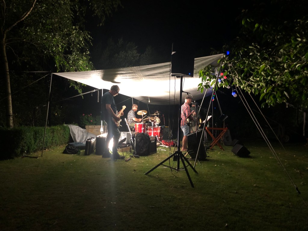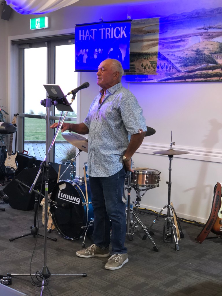 Brent, das Geburtstagskind, bei seiner Rede.Die Band „Hattrick“.