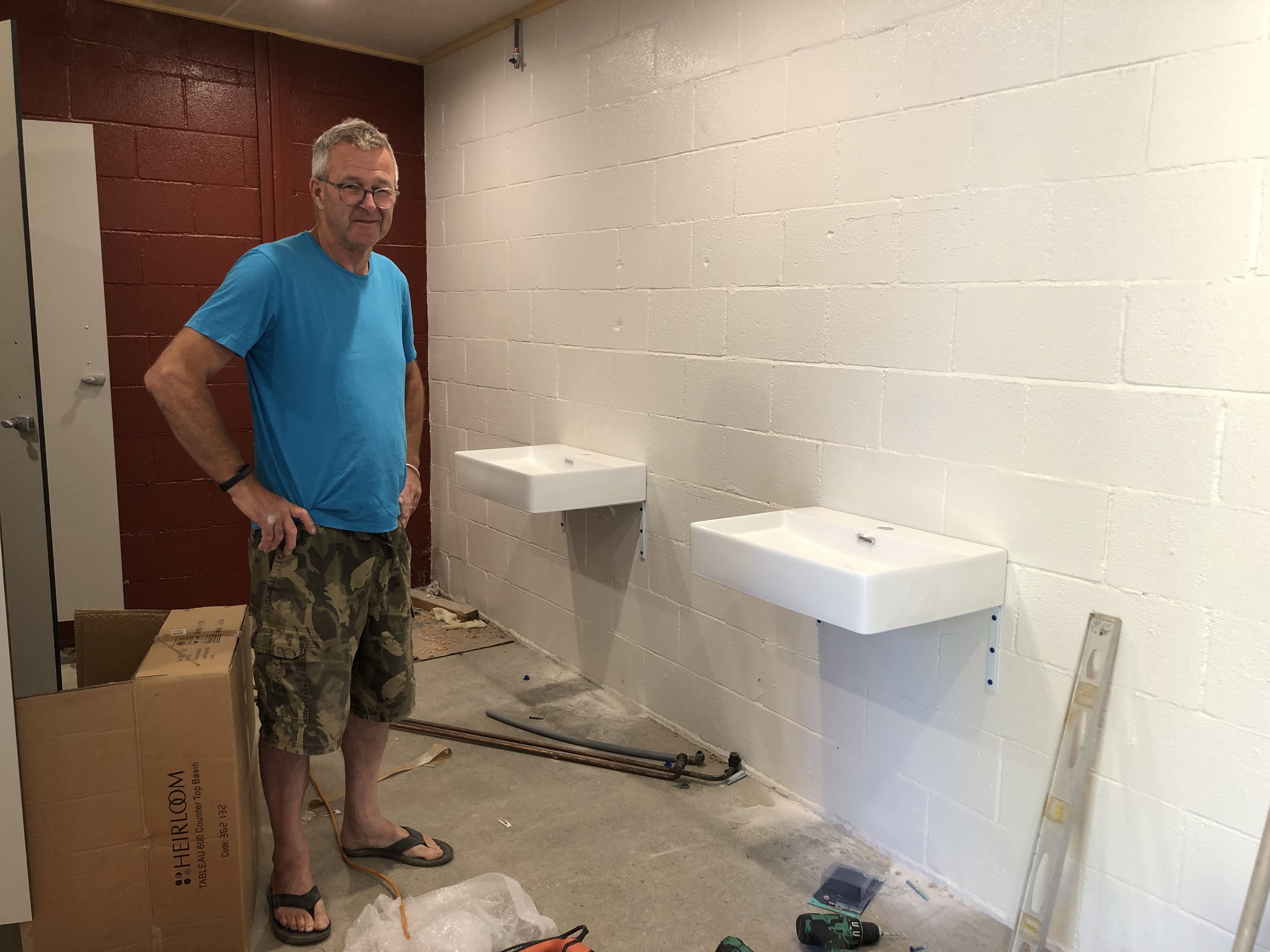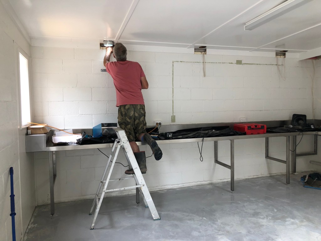 Davie, unser Elektriker, hat die Duschtimer angeschlossen und neue Steckdosen in der Küche gesetzt: