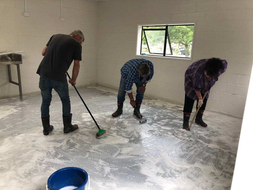 … und eine neue Schicht Farbe für den Küchenfußboden. Wie schon berichtet hatte das Streichen nicht geklappt, die Farbe wollte einfach nicht trocknen. Da der Boden aber so nicht benutzbar war, mussten wir irgendwie die klebrige Schicht wieder abkriegen, und das war leichter gesagt als getan! Zuerst arbeitete Roy zwei Tage daran, das klebrige Zeug zu entfernen, leider nur mit mäßigem Erfolg. Danach schrubbten und kratzen Paddy und ich mit Hilfe von Susan und Les, zwei unserer permanents, die so nett waren, uns zu helfen, zwei weitere Tage die oberste Schicht ab, so dass man die Küche wenigstens benutzen konnte, ohne kleben zu bleiben… was für ein Mist! Das war echt ärgerlich, zumal wir noch so viele andere Dinge zu tun hatten! Aber Ende gut, alles gut, der neue Anstrich muss jetzt wohl bis nach der Saison warten.