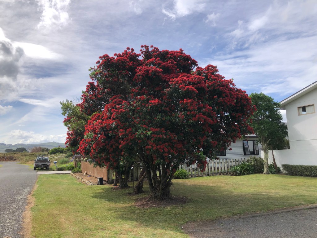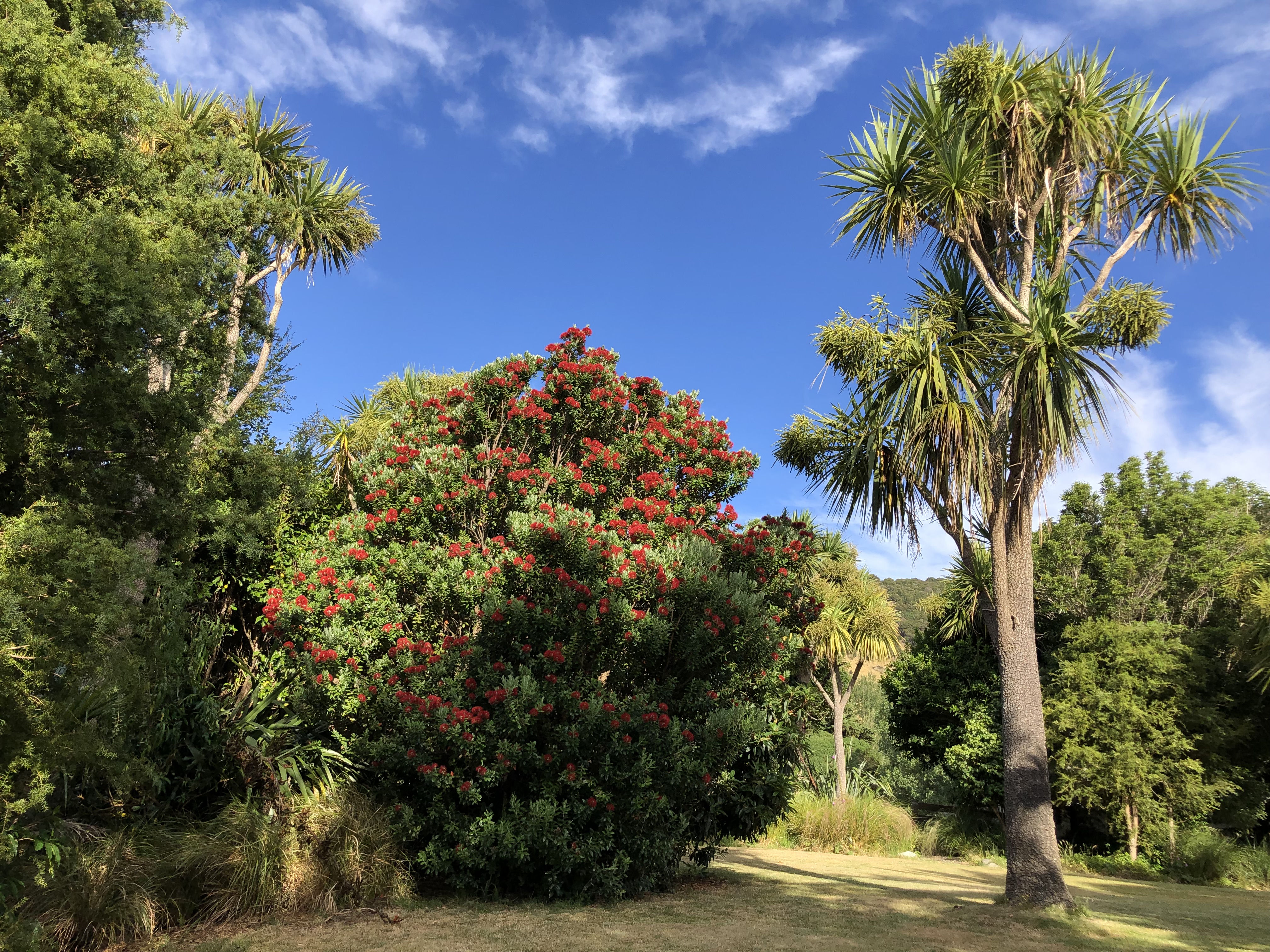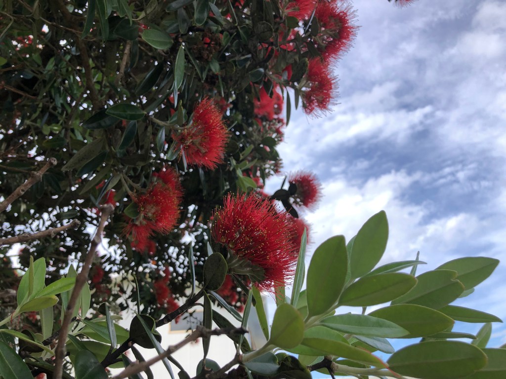 Um Weihnachten herum blühen in Neuseeland die Pohutukawa trees, das sieht wunderschön aus!