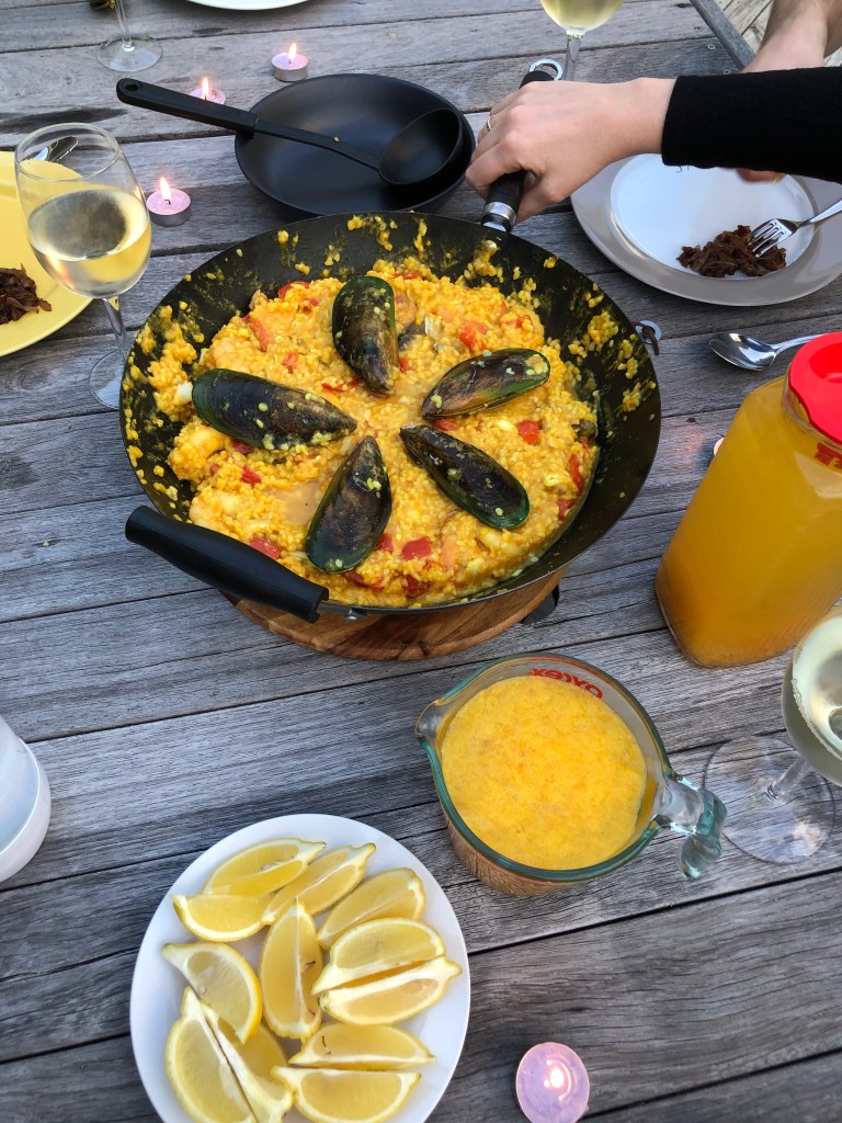 Und sobald die beiden hier waren, übernahm Thorsten das Kommando in der Küche – von da an gab es immer lecker Abendessen, zum Beispiel Paella, yummy!!