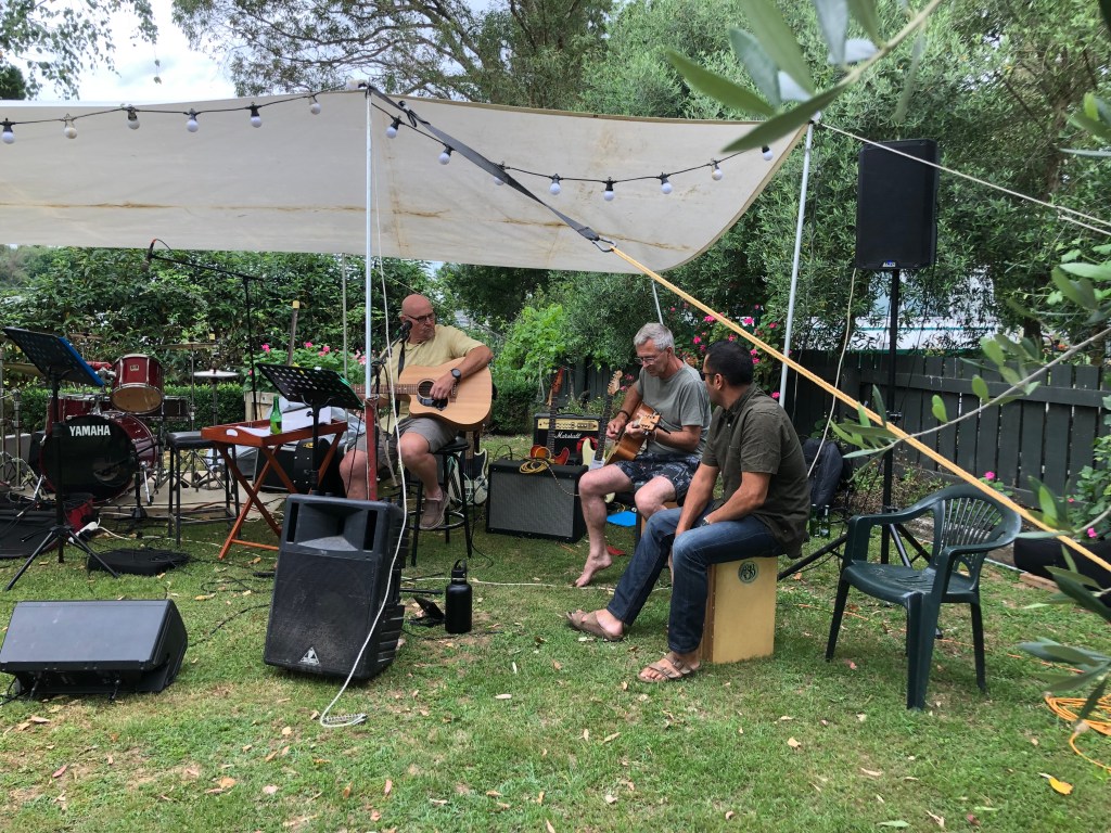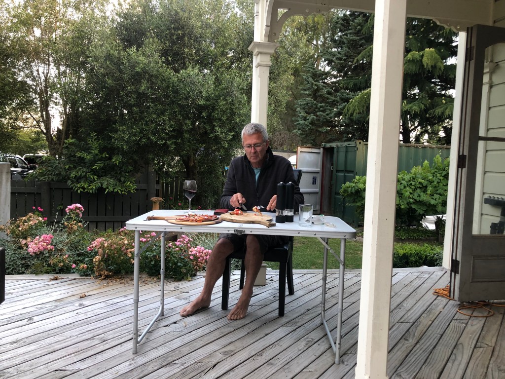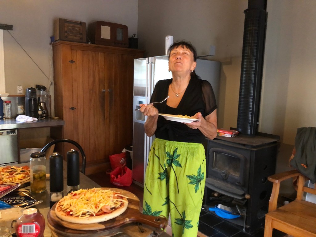 Da es inzwischen zumindest Temperatur-mäßig schon Winter ist hier in Neuseeland, verlegten wir die Feier bald von draußen vorm Pizzaofen nach drinnen in die warme Küche und das warme Wohnzimmer, und für Musik war natürlich auch gesorgt, dank Roy, Tohu und Paddy: