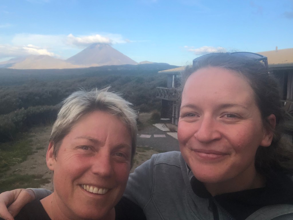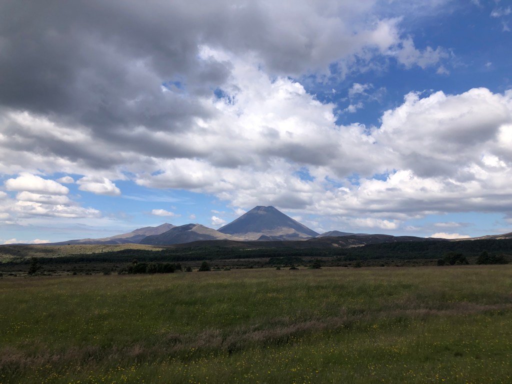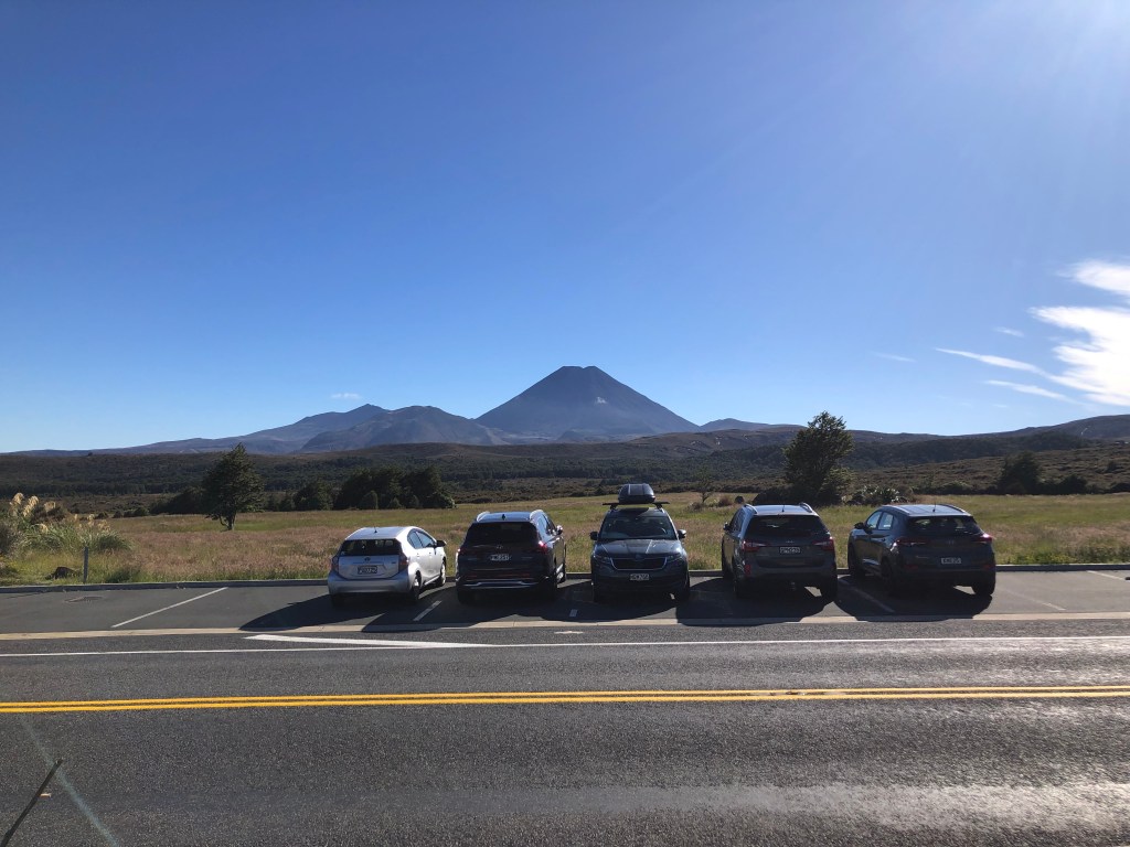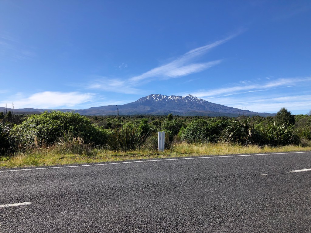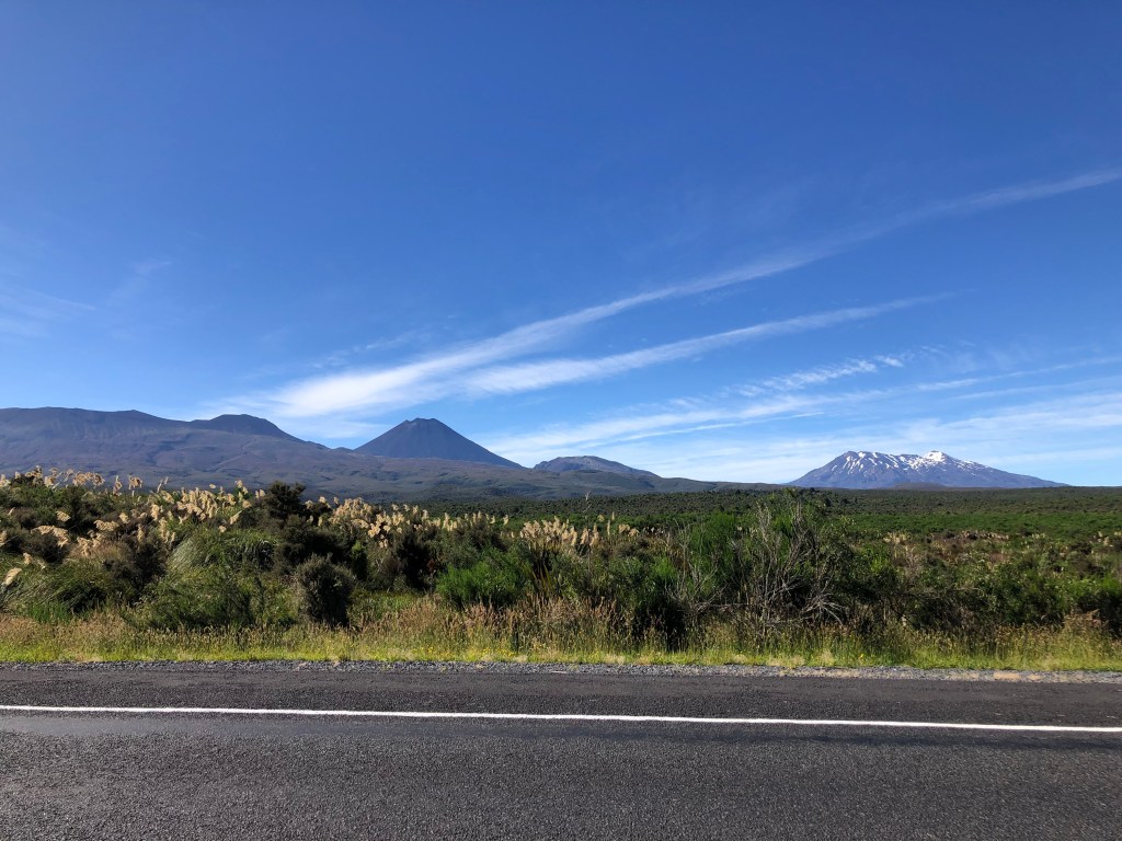 Yayyy, Kaffee vor der Heimfahrt!Yummy breakfast – Kaffee und Krapfen 🙂Heute morgen kein Wölkchen am Himmel!Sogar Mount Ruapehu zeigte sich in seiner ganzen Pracht!Zum Abschied dann nochmal alle drei auf einen Blick!