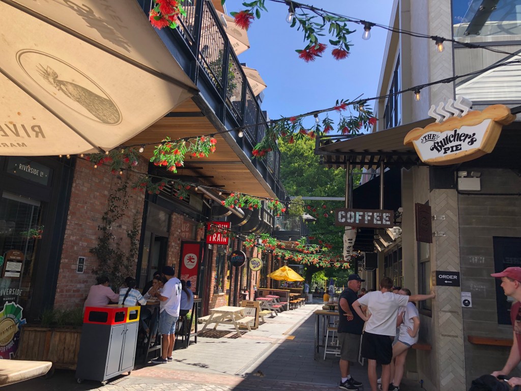 Unsere erste Station war das Hygge Café in Clifton, wo wir uns erstmal einen herzhaften Lunch als Grundlage für den Wein genehmigten. Das Wetter war perfekt an diesem Tag, sonnig und warm, aber nicht zu heiß.
