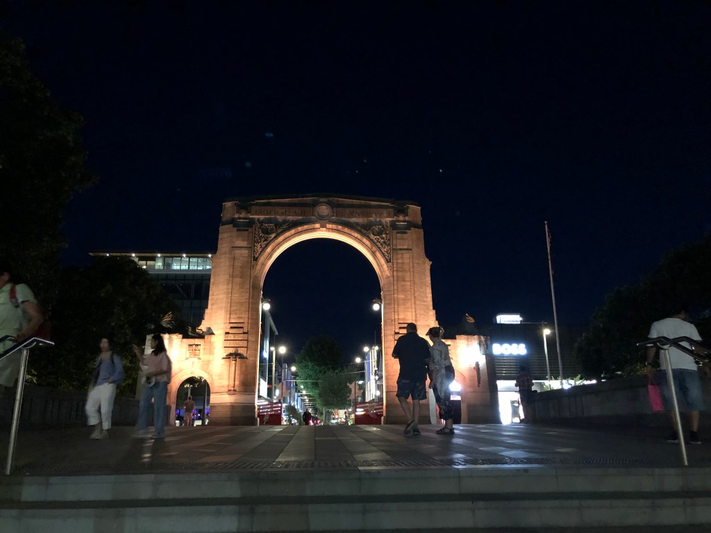 Gegen Abend machten sich alle Leute auf zur Marine Parade und der Sound Shell, denn dort würde es die halbe Nacht Konzerte geben. Auch wir wanderten dorthin und suchten uns ein freies Plätzchen auf dem Rasen zwischen all den passend zum Anlass gekleideten Menschen. Um uns herum wurden Picknicks ausgepackt, und auch wir wurden hungrig, so dass Thorsten sich zur nächsten Pizzeria aufmachte und mit einer großen, leckeren Pizza für uns zurückkam: