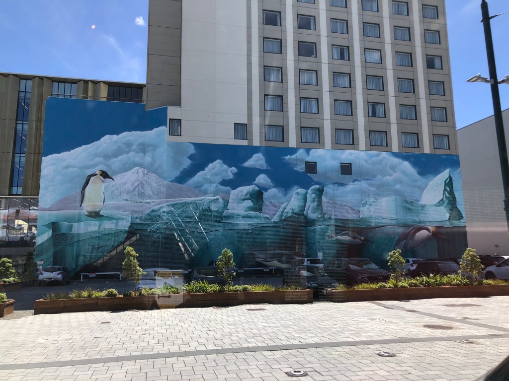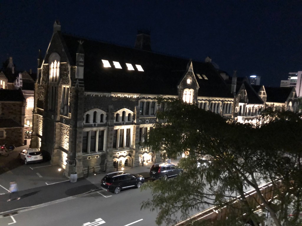 Wir schlenderten noch ein wenig durch die laue Nacht, lauschten der Musik in der Sound Shell und machten uns dann auf zu unserem Hotel in Ahuriri, das Claudi ausgesucht und gebucht hatte. Die Zimmer waren riesig! Und die Bildergalerie in den Gängen war sehr unterhaltsam und gut für Fotos zu verwenden 🙂