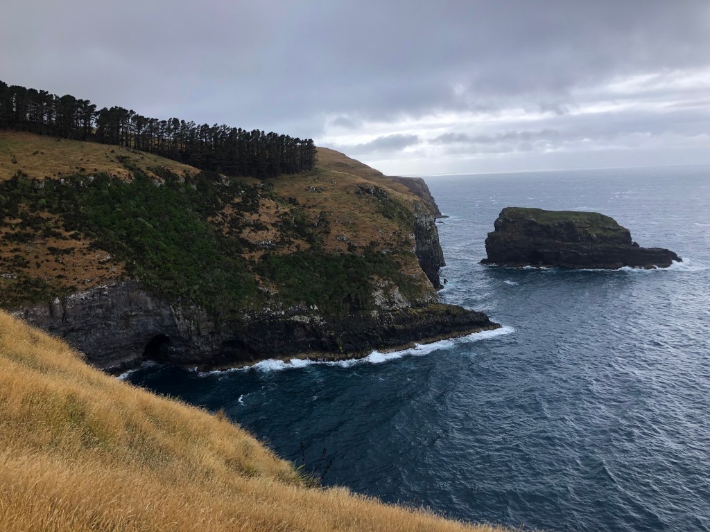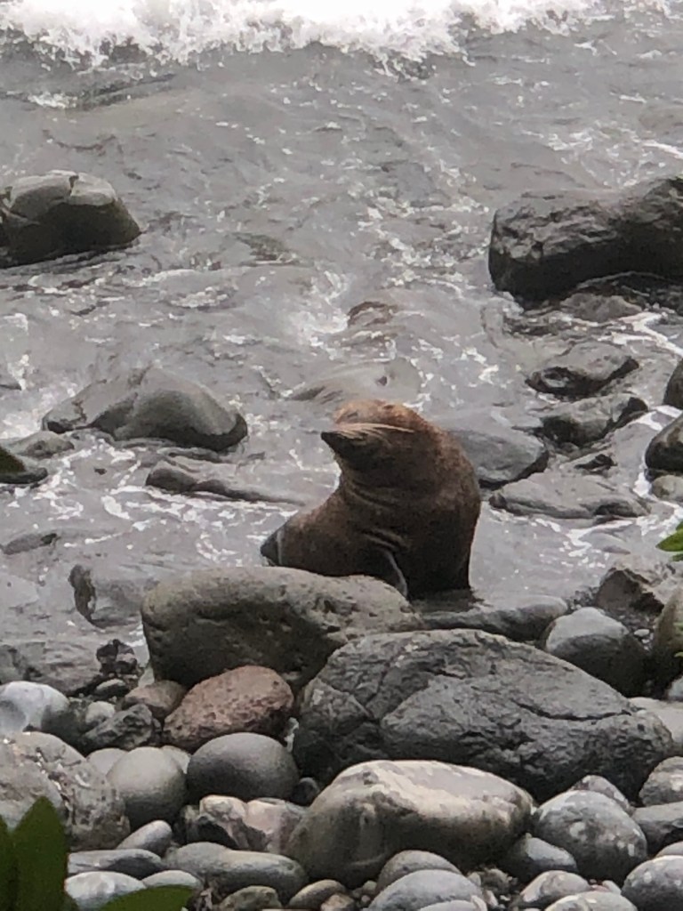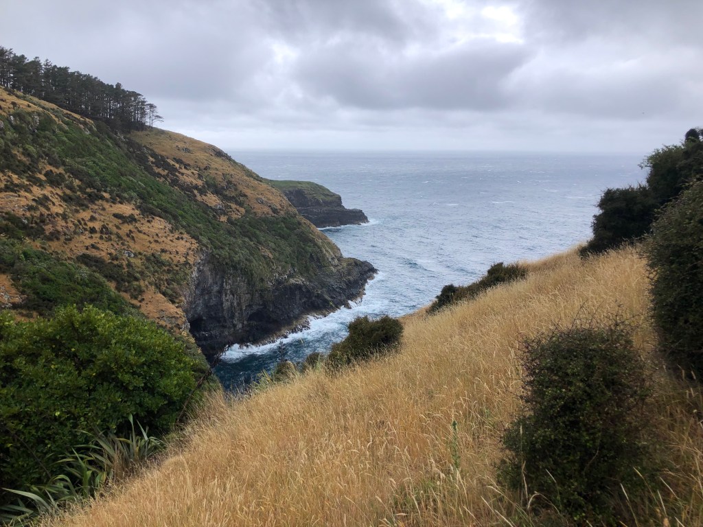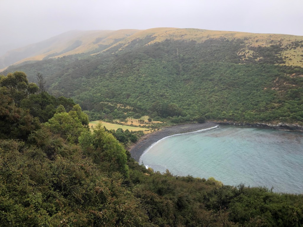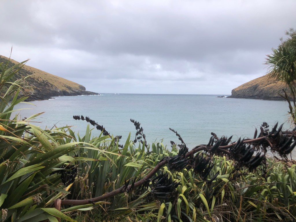 Am Kairakau Beach angekommen, machte ich Mittagspause und stärkte mich mit Müsliriegeln und Apfel für den zweiten Teil der Tour, der mich nach Hause bringen würde. Die Aussicht von meiner Bank aus war traumhaft, das Meer hat schon was… und Kairakau Beach ist mein Lieblingsstrand von den fünfen in unserer Nähe: