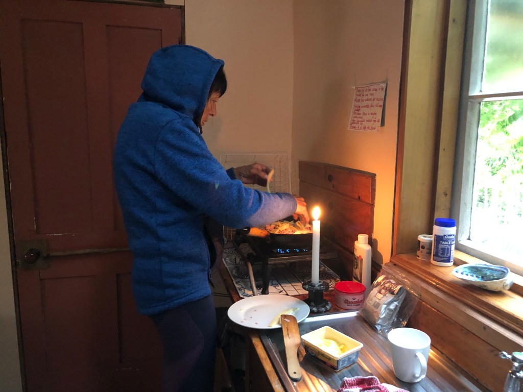 Abends gab es dann Resteessen, was in Neuseeland Pies bedeutet, die mit sämtlichen Resten des Vortages gefüllt werden. Hier Pie-Spezialist Paddy bei der Zubereitung, selbstverständlich unter den interessierten Augen seiner Zuschauer: