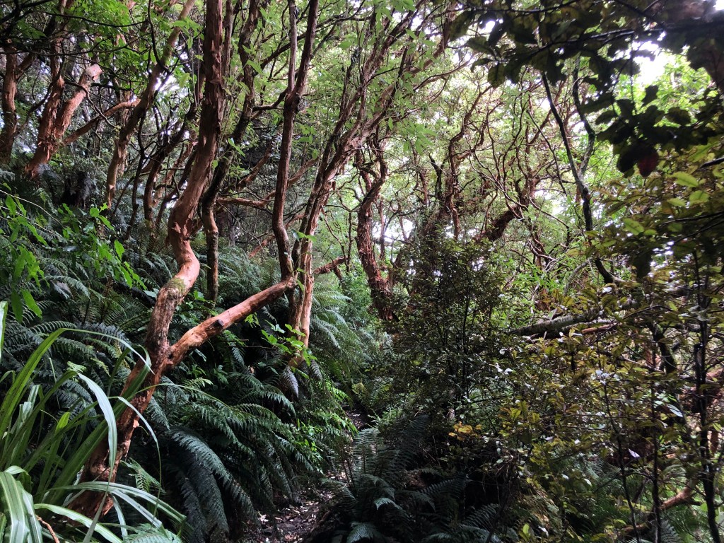Je weiter man nach unten kommt, desto mehr Pflanzen gibt es wieder. Zunächst läuft man durch immer höher werdende Büsche…