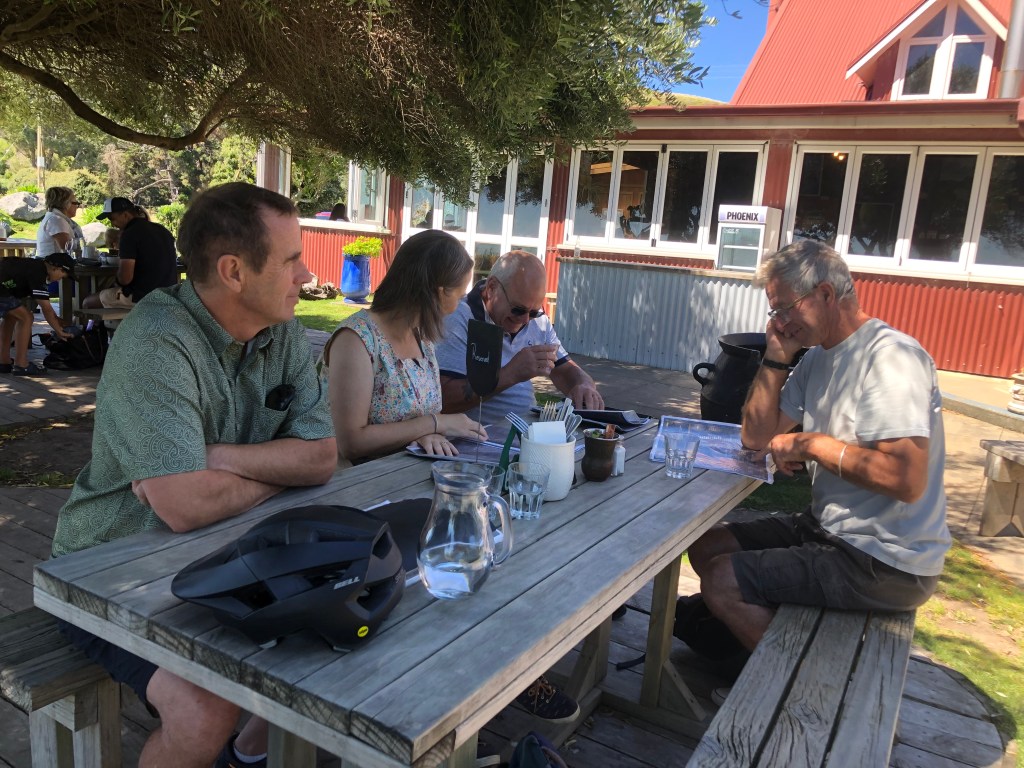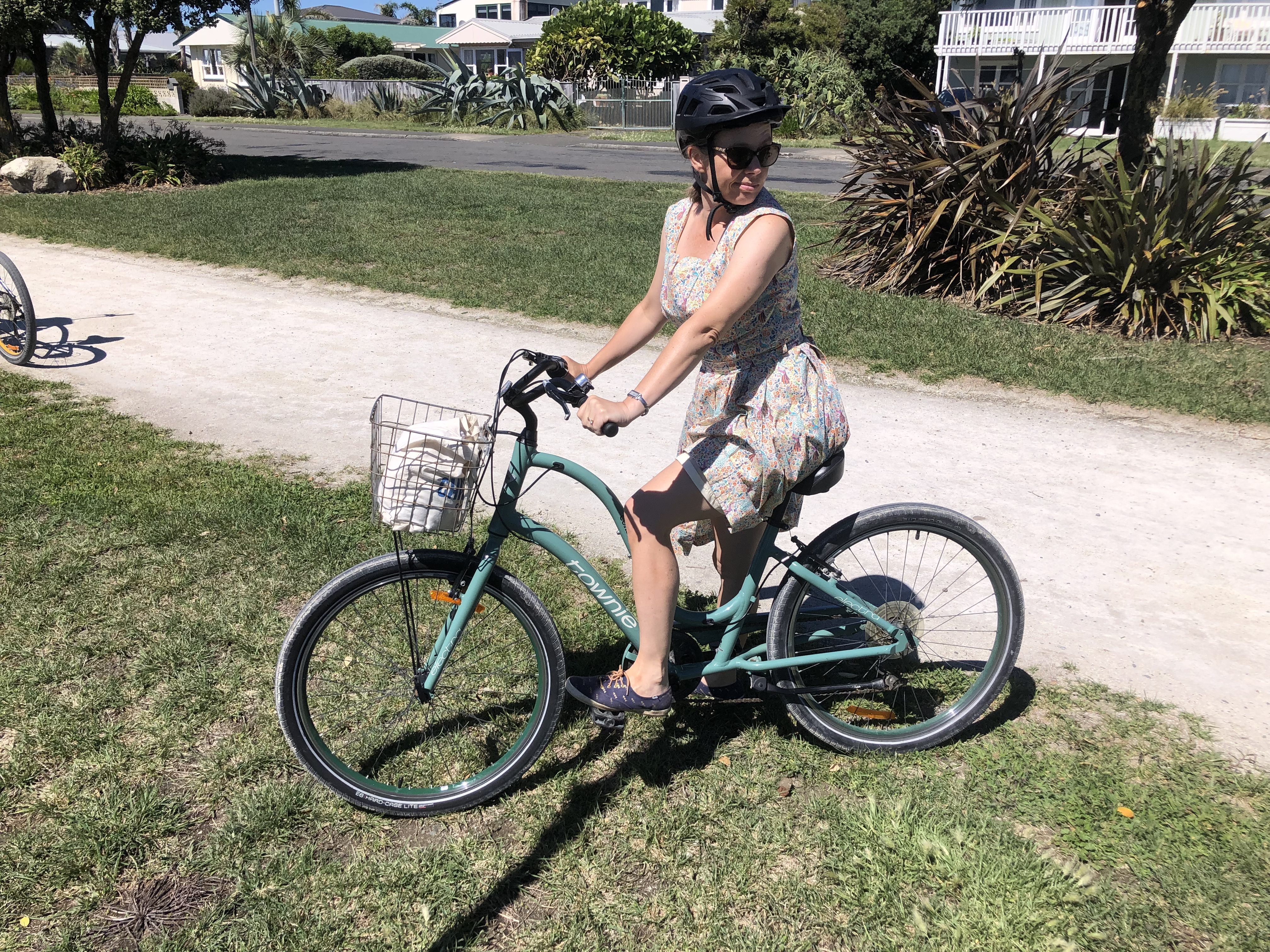 Anfang Februar löste Paula ihren Gutschein für eine Winery Tour bei uns ein, den wir ihr zum vorletzten (!) Geburtstag geschenkt hatten. So lange hatte es gedauert, einen gemeinsamen Termin zu finden… ok, Cyclone Gabrielle und der Wiederaufbau danach haben da schon auch ein bisschen dazwischen gefunkt. Und so machten wir uns am 04. Februar auf nach Hamoana, wo wir coole City-Cruiser-Bikes ausliehen, denn natürlich wollten wir auf der Winery Tour auch Wein trinken, da geht Autofahren eher nicht so gut. Paddy’s Tochter Liv hatte sich netterweise bereit erklärt, Chauffeur zu spielen und uns nach Hamoana und zurück zu bringen. Nach kurzer Einführung und Einstellen der Räder ging es los Richtung Clifton: