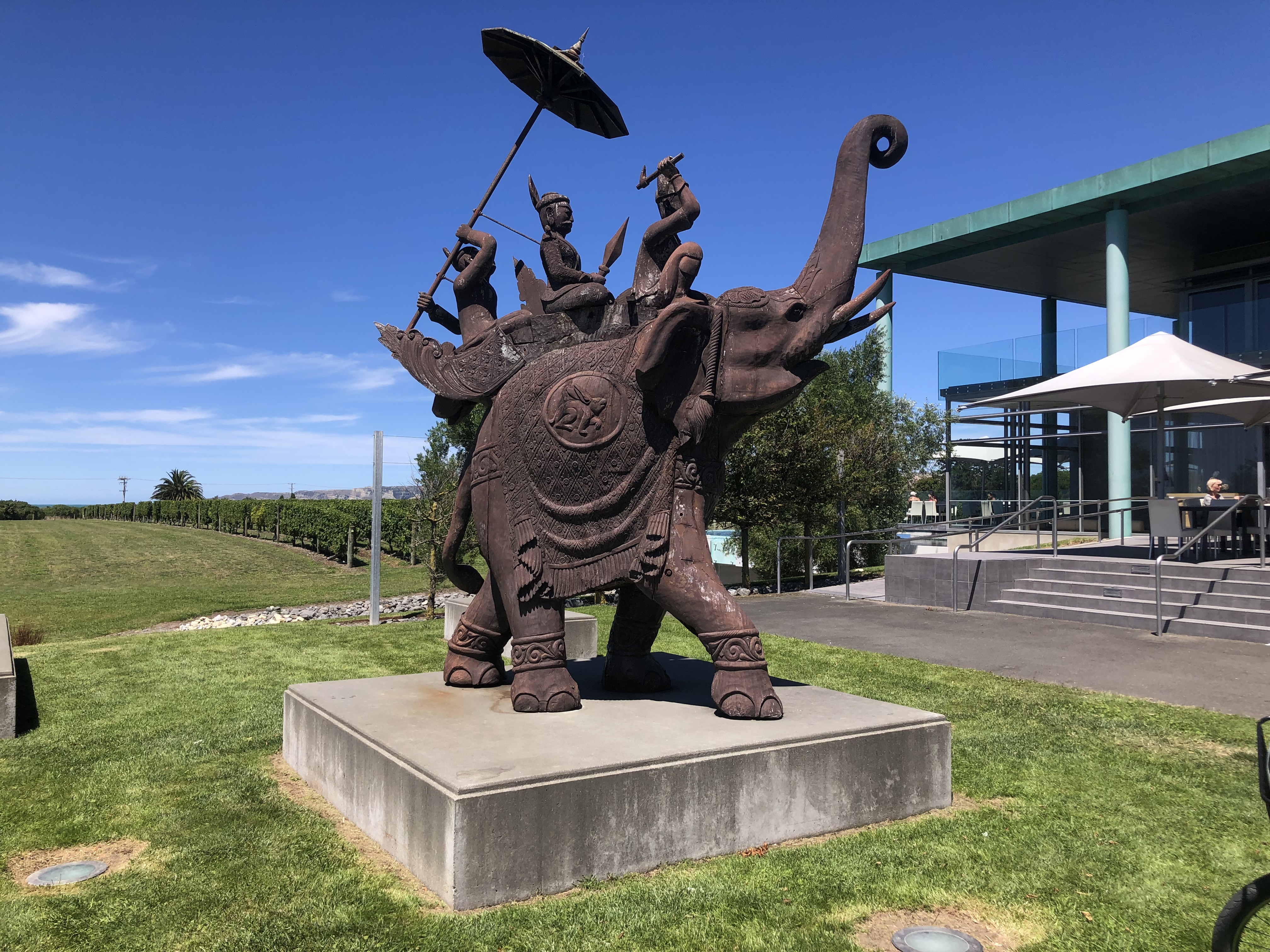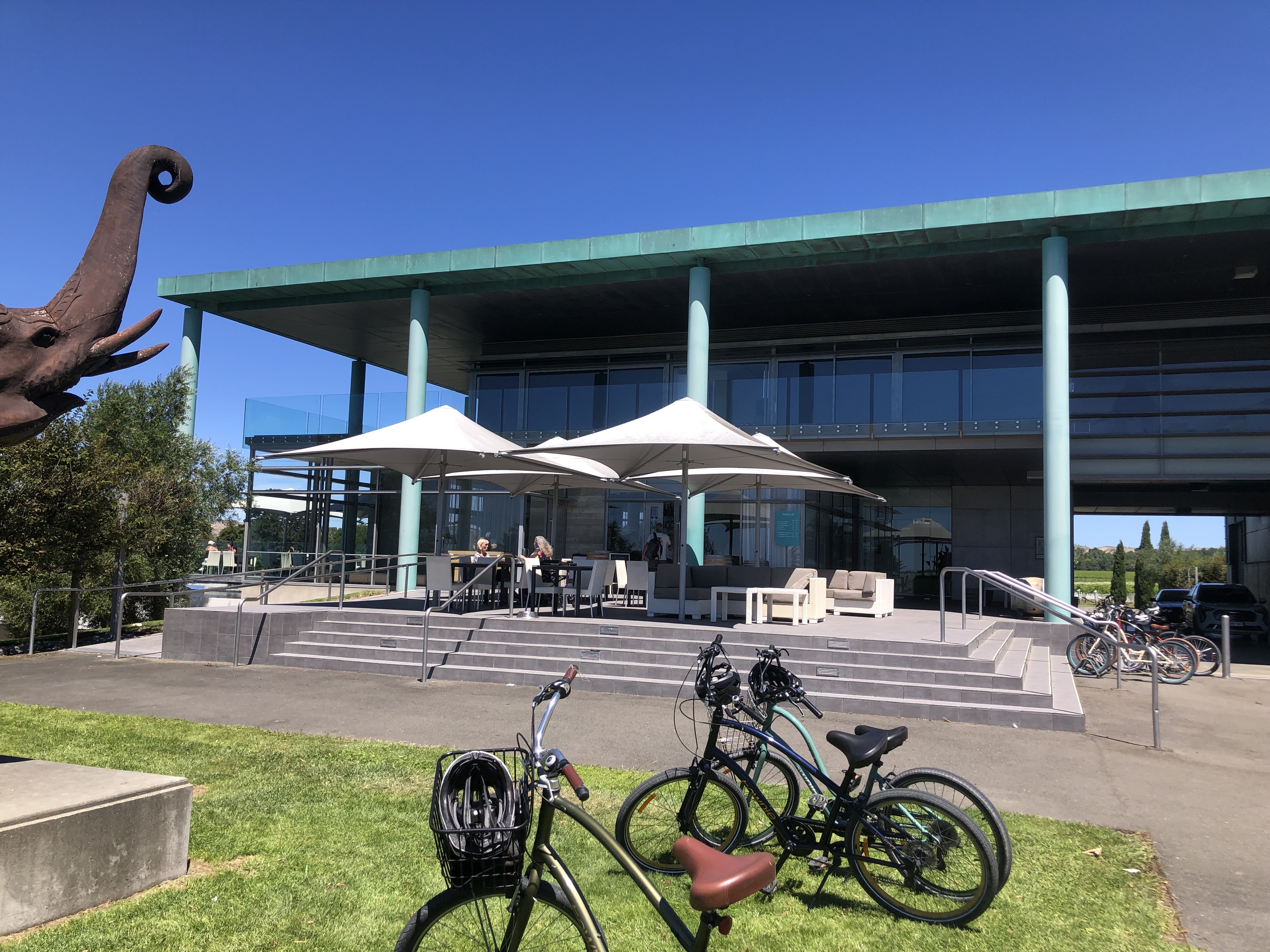 Gut gelaunt nach der ersten Weinverkostung radelten wir über einen kleinen Umweg zur Elephant Hill Winery, die in einem sehr modernen Bau untergebracht ist. Hier gönnten wir uns ein Wine tasting mit offiziell 5 verschiedenen Weinen, wir bekamen aber 7 oder 8, die Lady hinter der Theke mochte uns wohl 😉