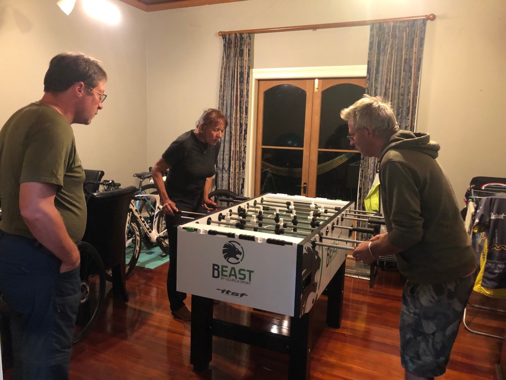 Claudi und Thorsten blieben noch ein paar Tage bei uns, bevor sie sich auf den Weg machten, die Nordinsel noch ein wenig zu erkunden. Den letzten gemeinsamen Abend verbrachten wir mit einem guten Essen (wie alle anderen Abende auch) und danach einem letzten Kicker-Duell. Es war echt eine schöne Zeit mit den beiden! Zum Glück sehen wir uns ja bald wieder, das nächste Mal dann in Deutschland.