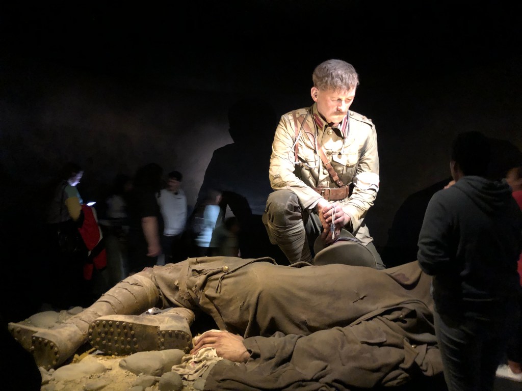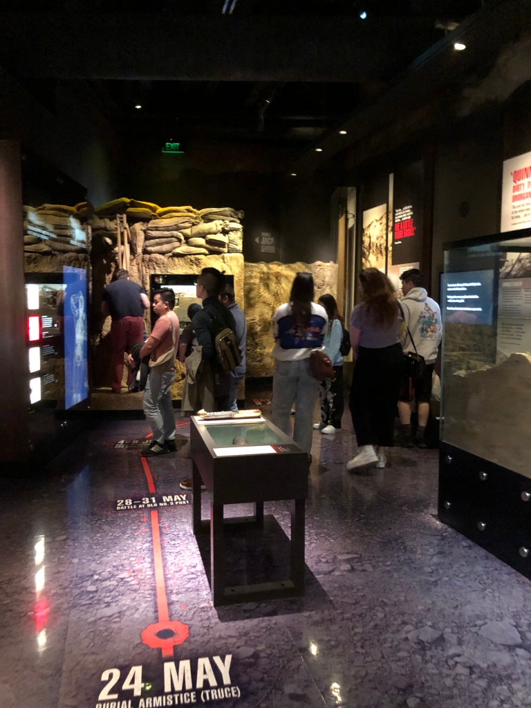 Obwohl das Wetter eigentlich zu schön für einen Museumsbesuch war, statteten wir Te Papa, dem Nationalmuseum, einen kurzen Besuch ab und sahen uns die Gallipoli-Ausstellung an, in der es um den Einsatz der australischen und neuseeländischen Armee im ersten Weltkrieg in der Türkei geht. Sehr eindrücklich sind die übergroßen Figuren von einzelnen Soldaten, deren Schicksal in der Ausstellung thematisiert wird. Ich hatte davor wenig Ahnung vom Mitwirken neuseeländischer Soldaten im ersten Weltkrieg.