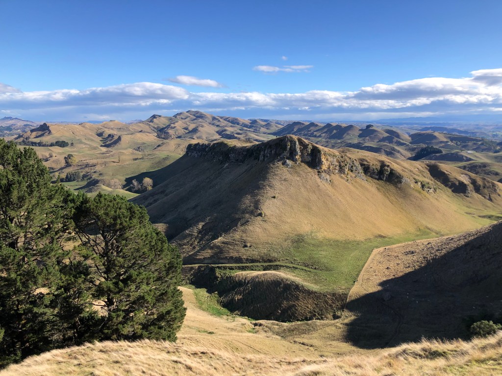 Windiges Gipfelbild 🙂Blick über das Flusstal des Tuki Tuki Rivers.Atemberaubender Blick über die Te Mata Hills.
