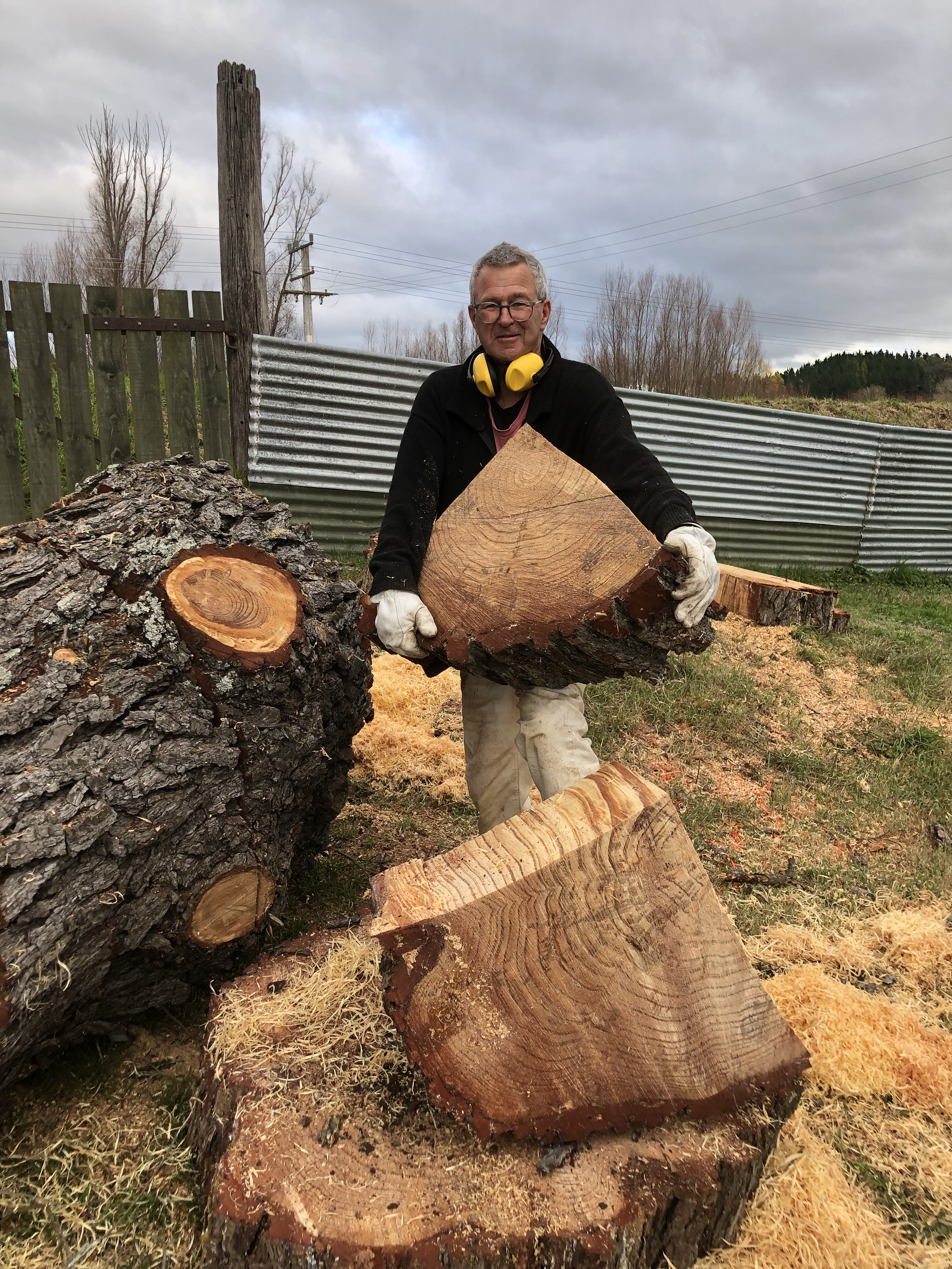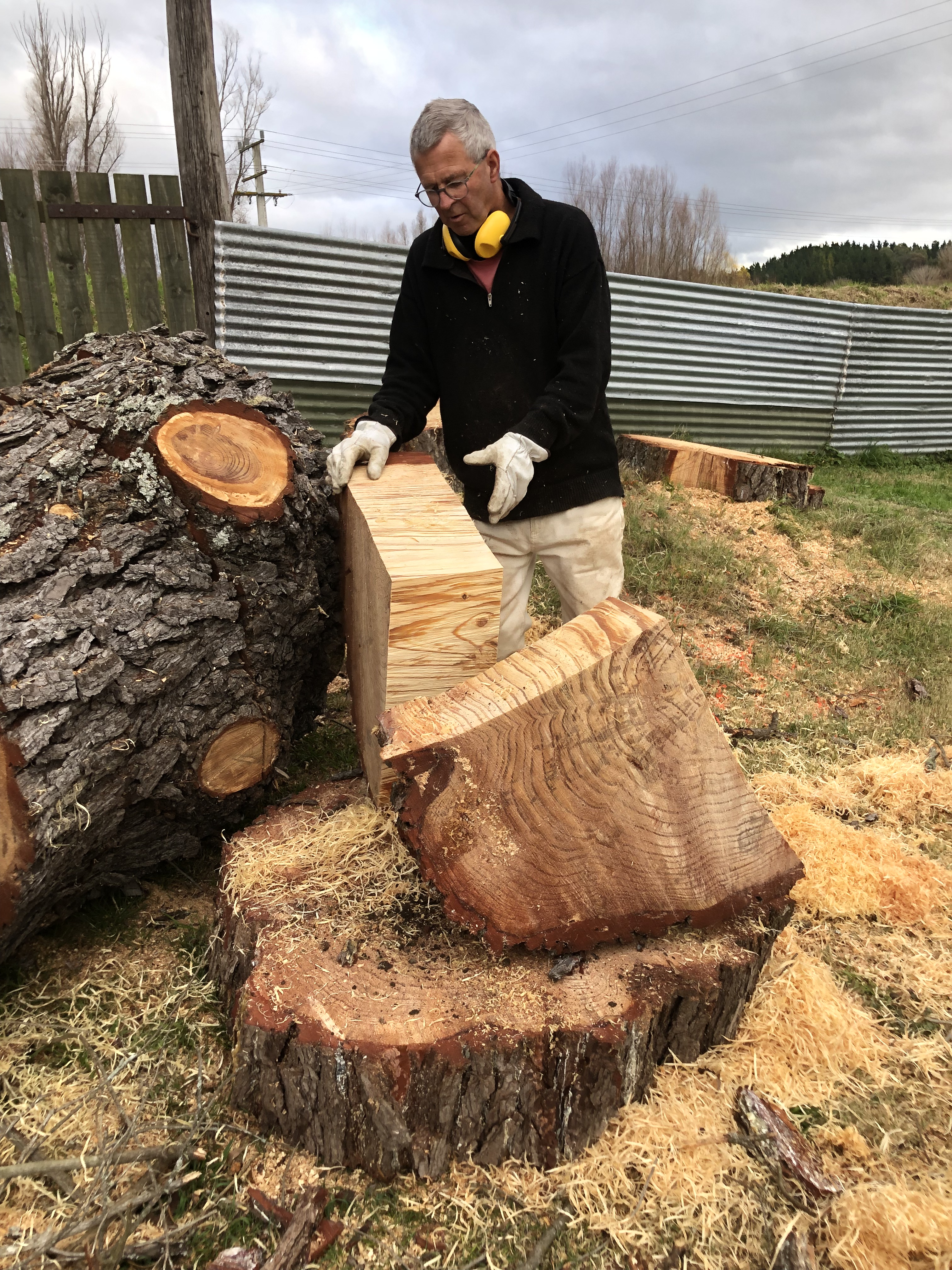 Netterweise hatte der Holzfäller uns die großen Äste entfernt und den Stamm mit seiner großen Kettensäge in Ringe gesägt.