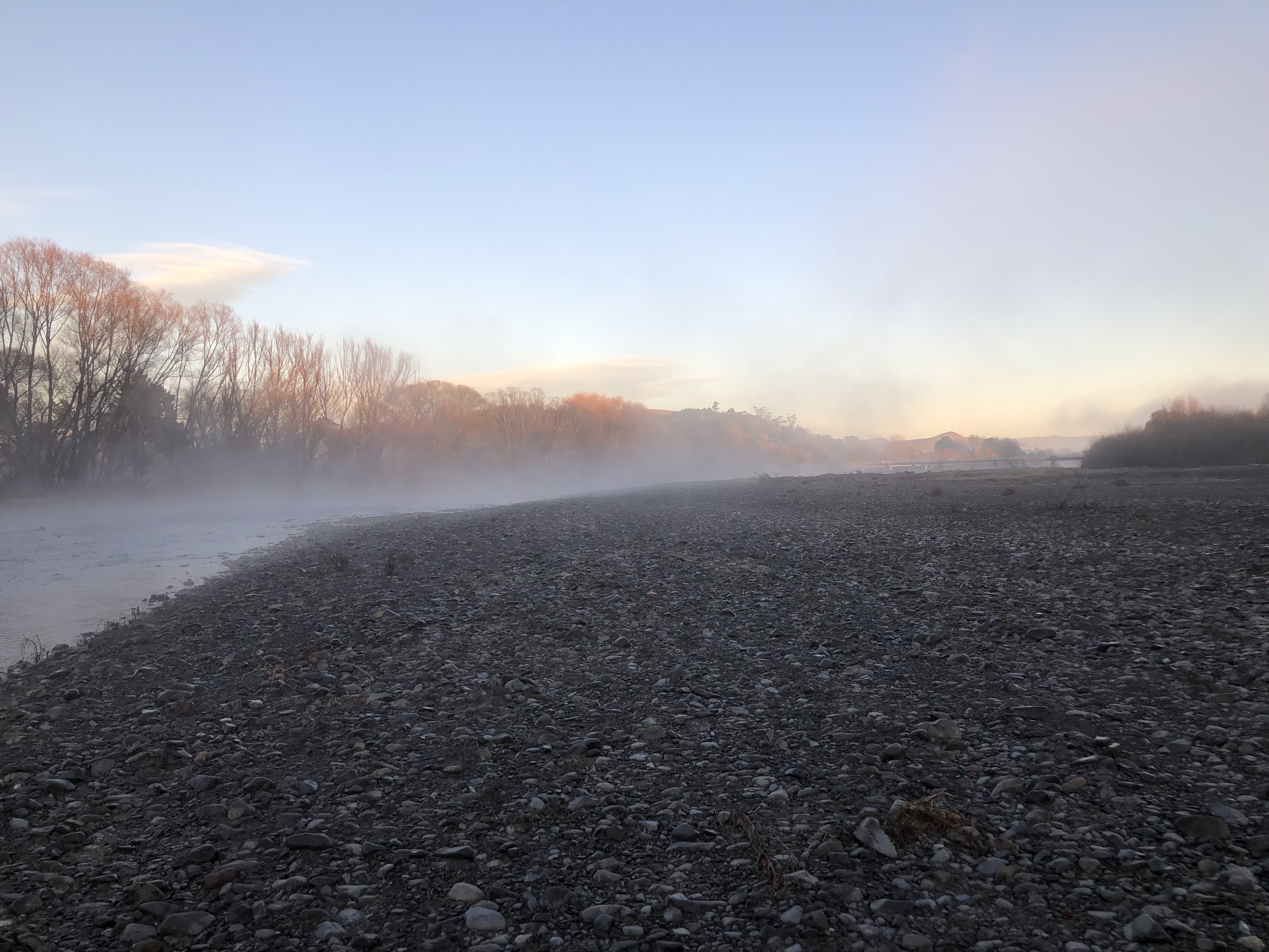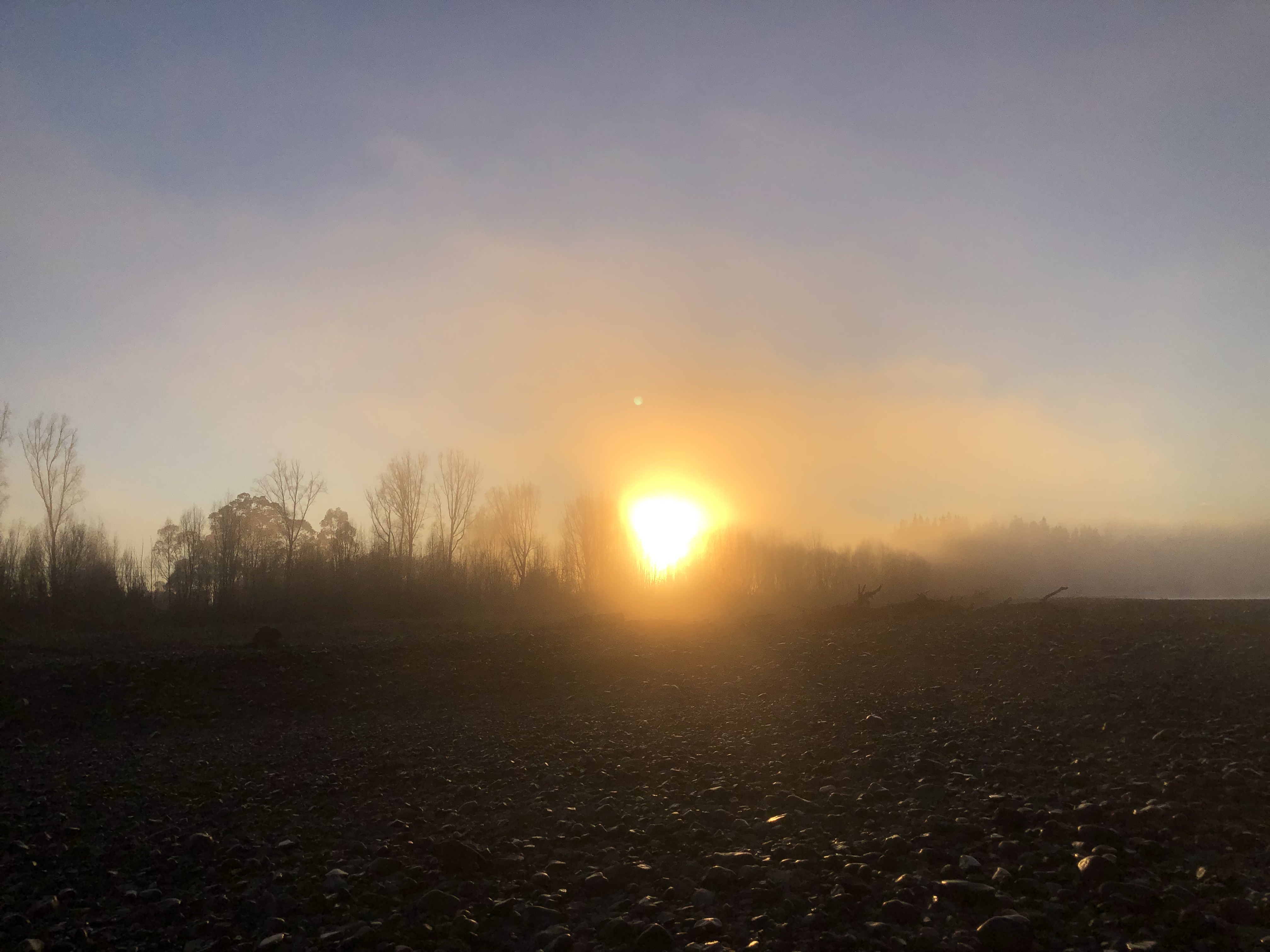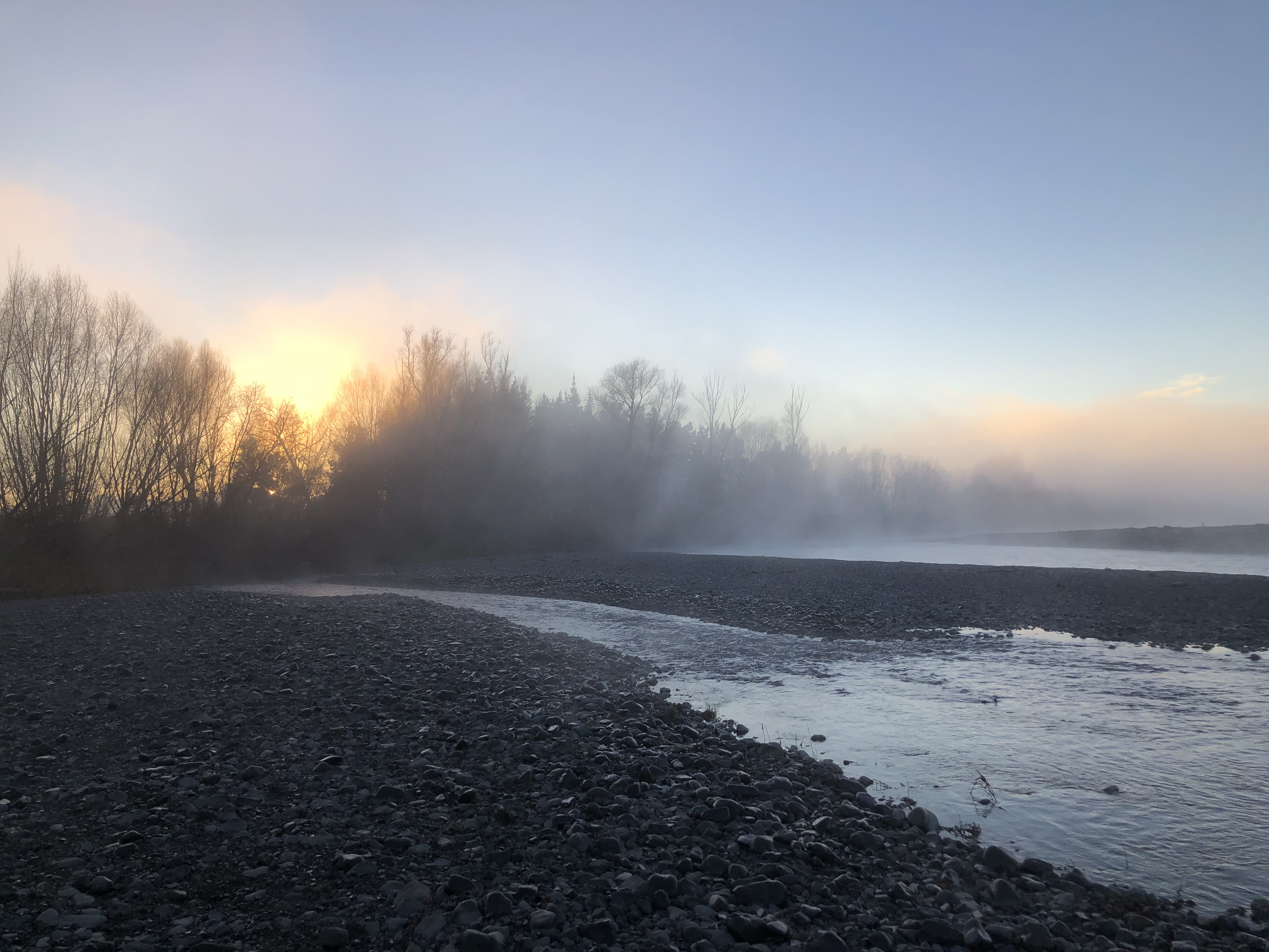 Auch so manch ein Spaziergang mit Harvey am Fluss entlang ist morgens um 7 Uhr noch ziemlich kalt, kann aber wunderschön sein: