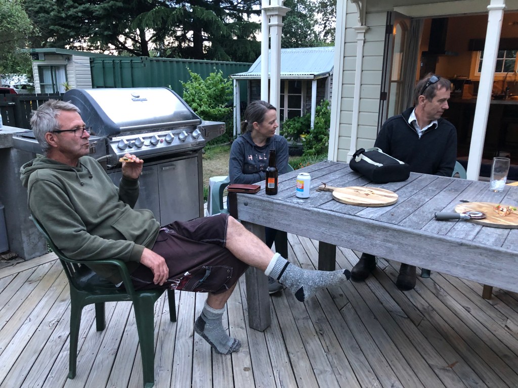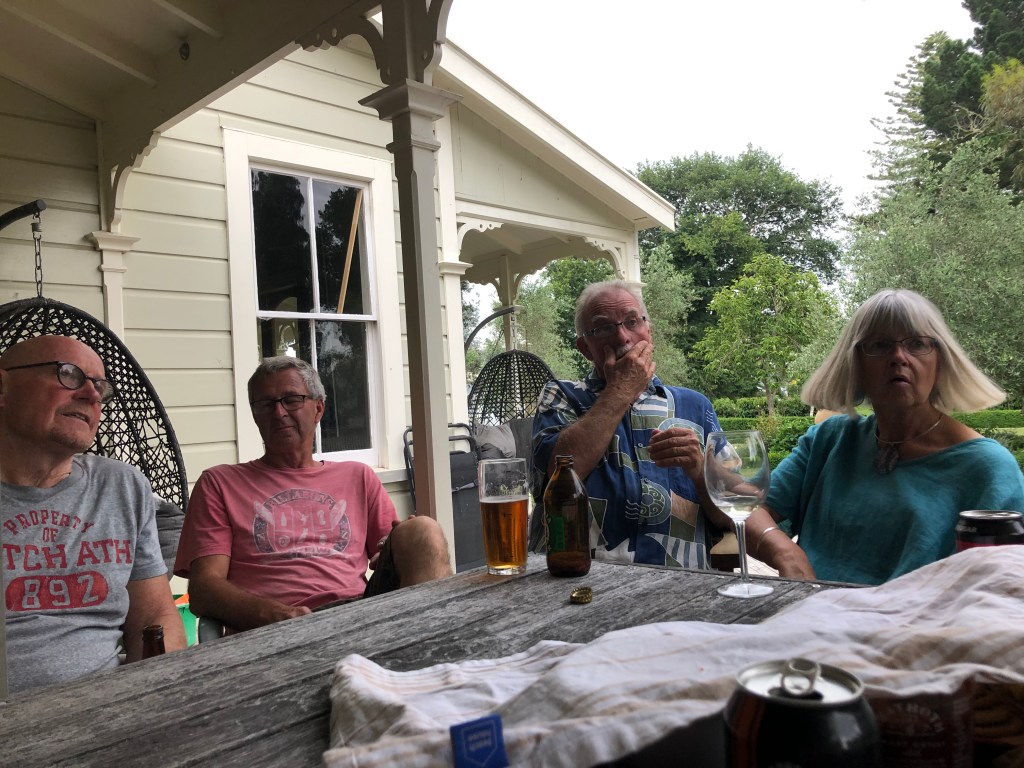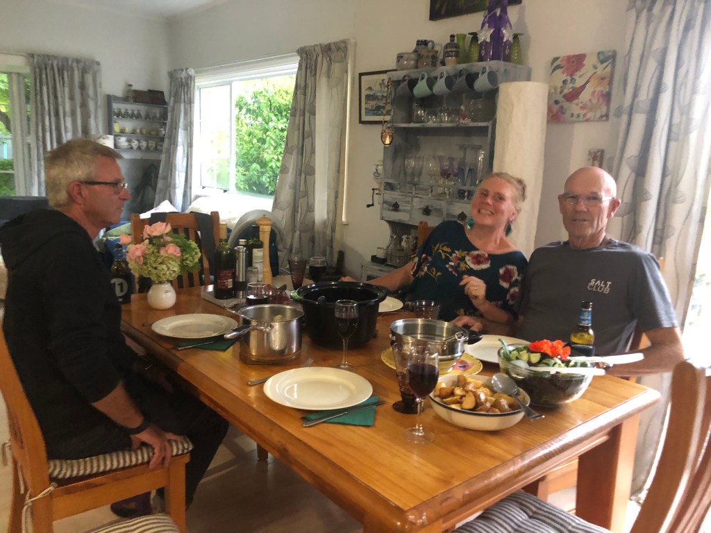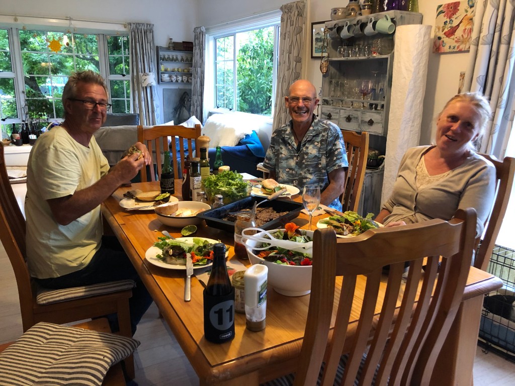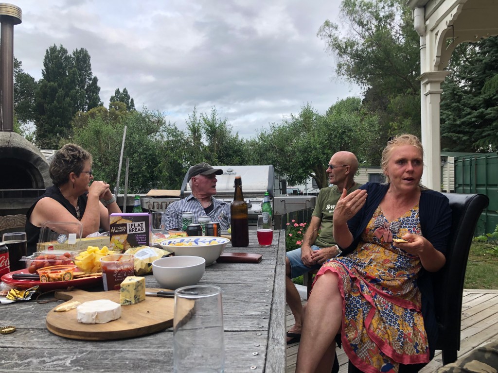 Letzte Woche Freitag hatten wir spontan ein paar Leute hier, das war echt nett. Lustig ist, dass solche Treffen meist sehr früh anfangen, so am Spätnachmittag, aber dafür auch zwischen 20.00 und 21.00 Uhr rum sind – bei uns wäre das jedes Mal eine lange Nacht. Außerdem bringt hier jeder immer seine eigenen Getränke mit, das ist in Neuseeland so üblich. 🙂